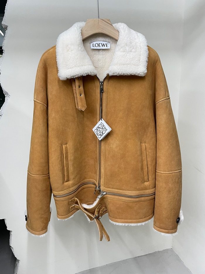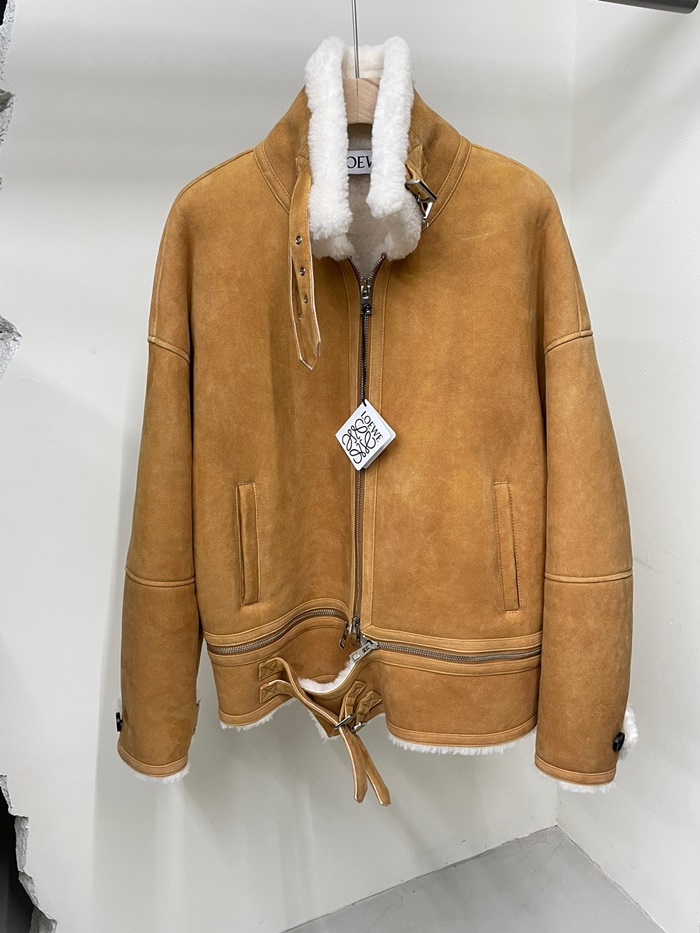ロエベメンズキャメルレザージャケットe0667