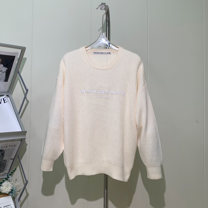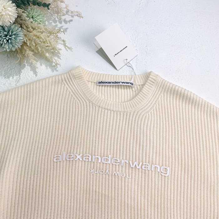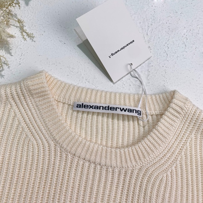アレクサンダーワンユニセックスアイボリークルーネックニットe0222