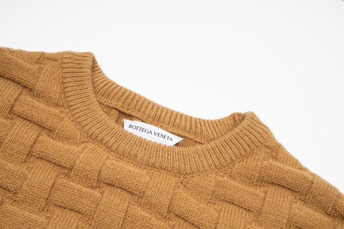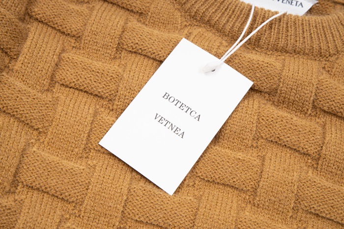 ボッテガヴェネタメンズキャメルクルーネックニットt0450