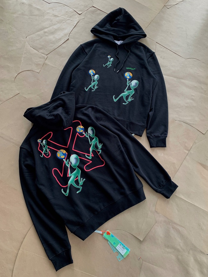 オフホワイトメンズカジュアルブラックフーディf0875