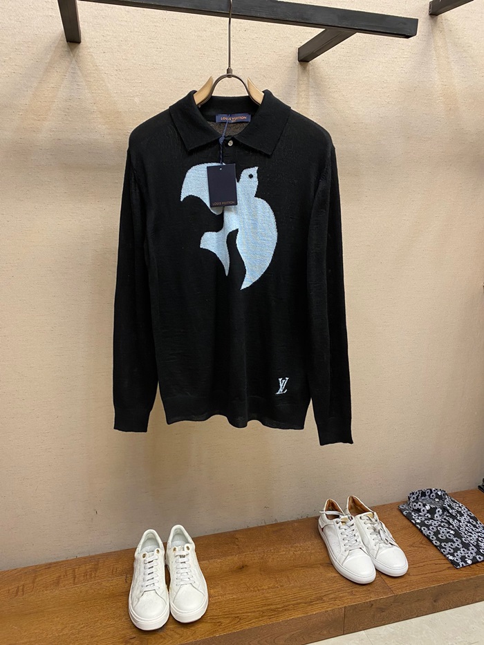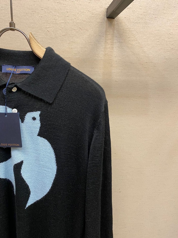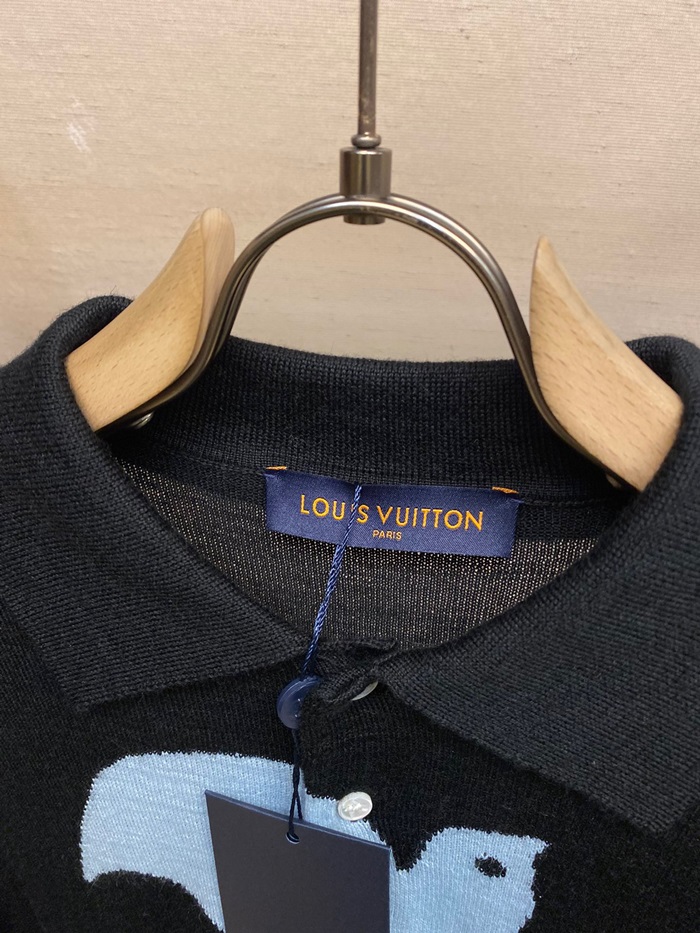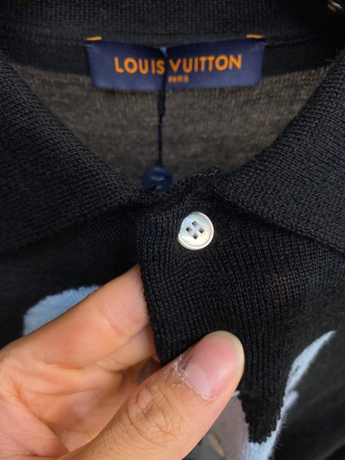 ルイヴィトンメンズブラックポロセーターv0011