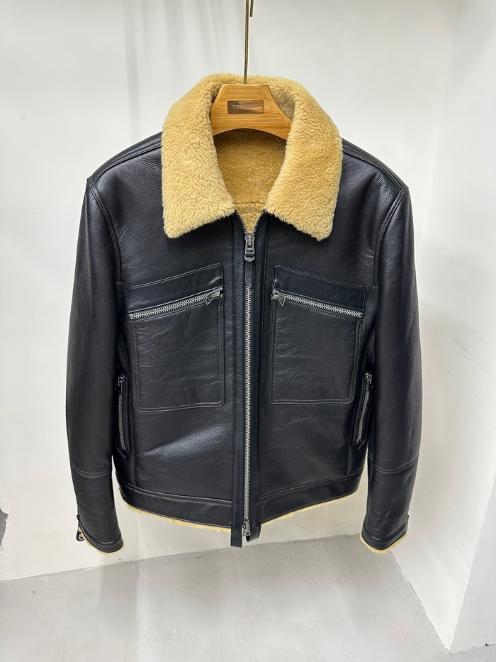トムフォードメンズブラックレザージャケットf0031
