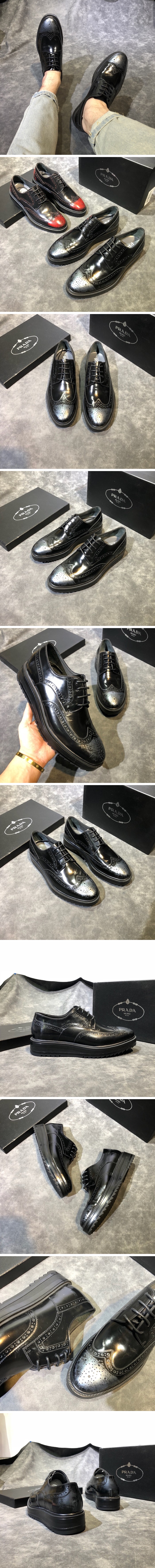プラダメンズレザーオックスフォードシューズA0101,