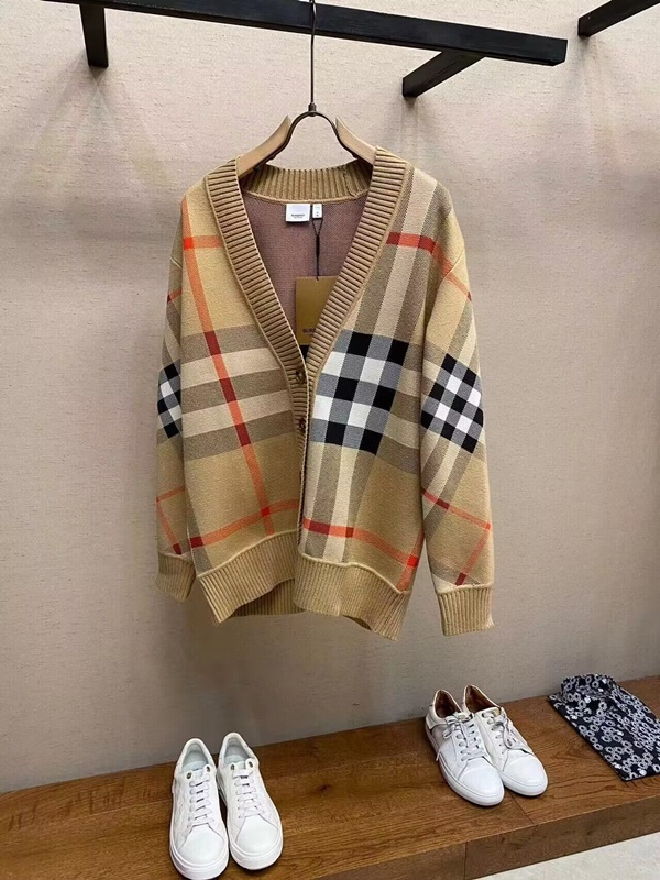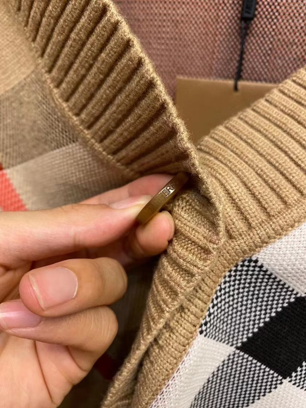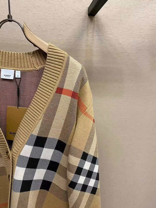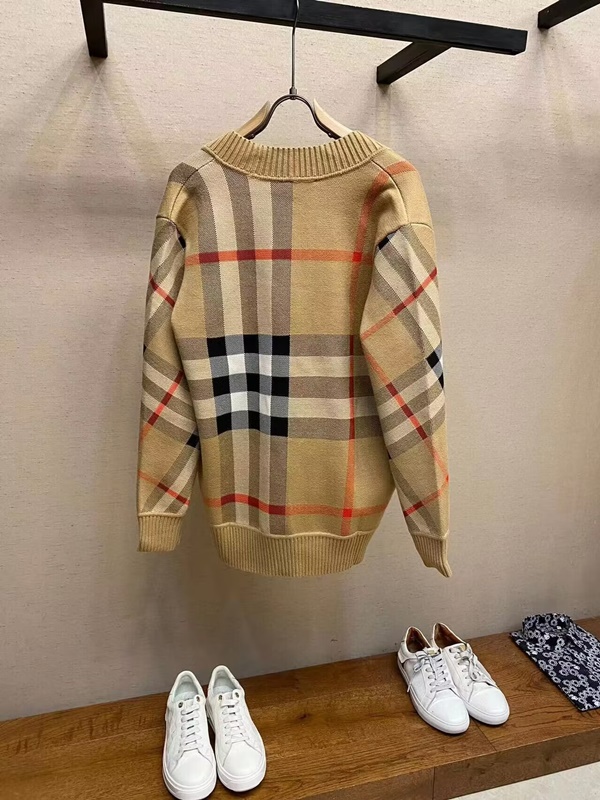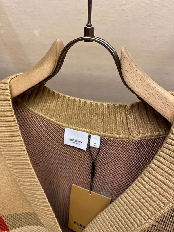 バーバリーメンズチェックネックベージュカーディガンr04613