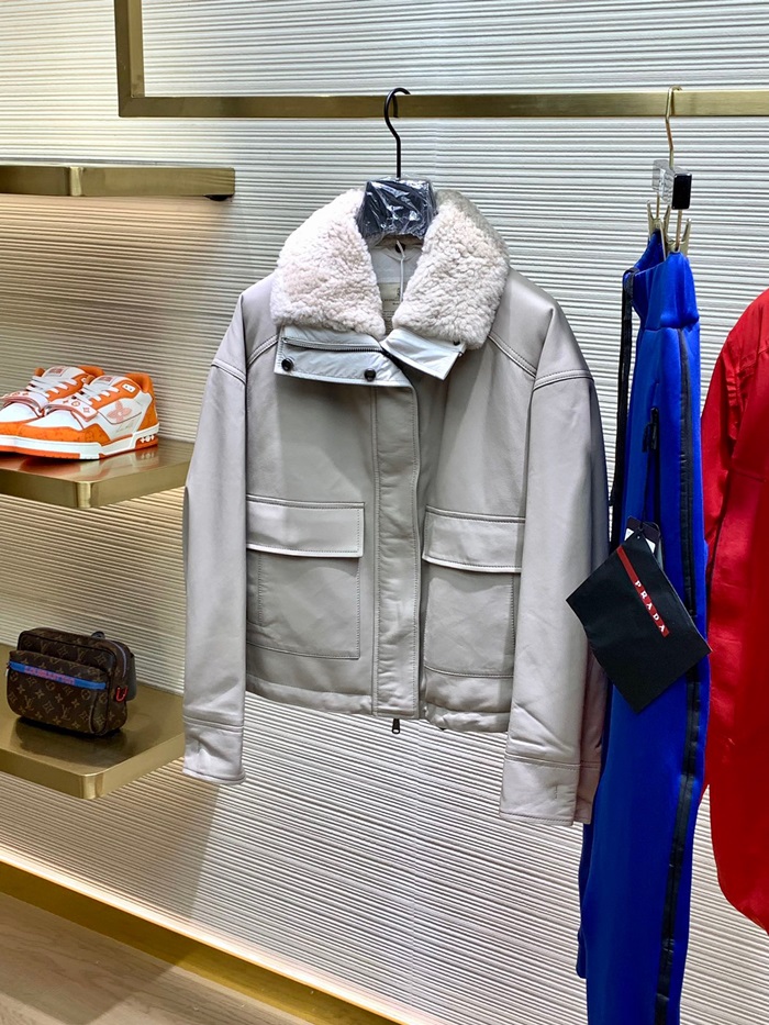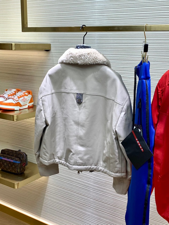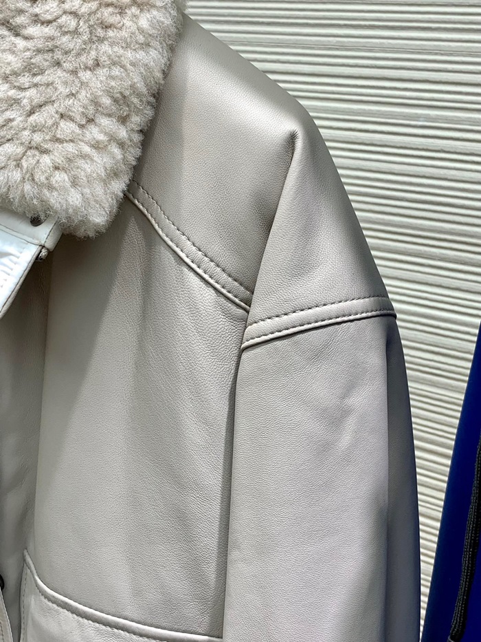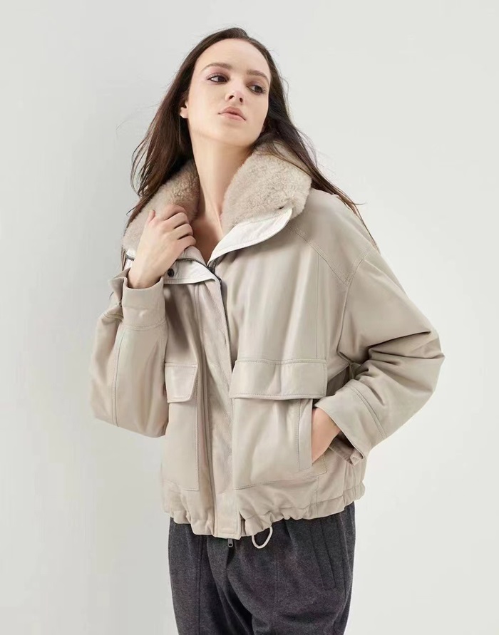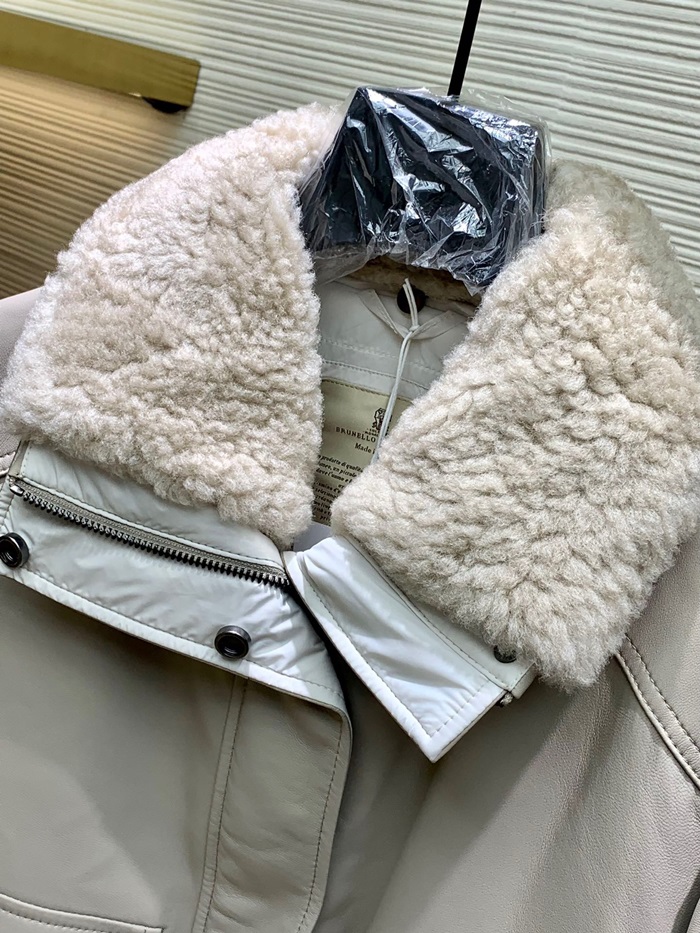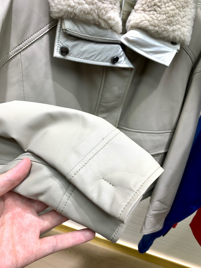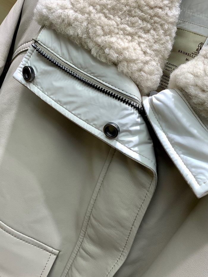 ブルネロクチネリレディースベージュレザージャケットu04