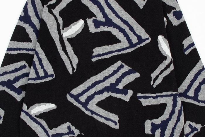 ェンディメンズブラッククルーネックニットe05