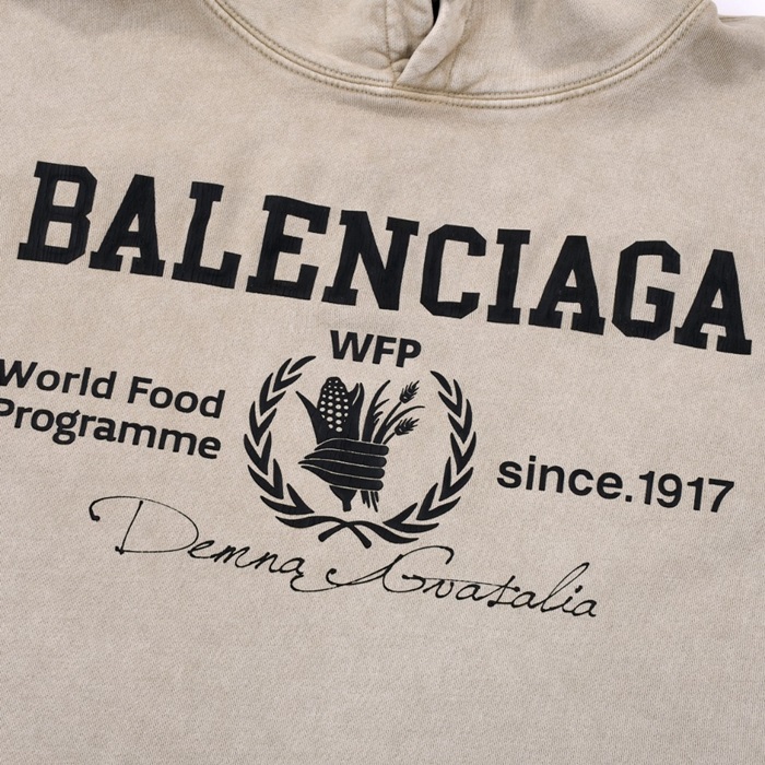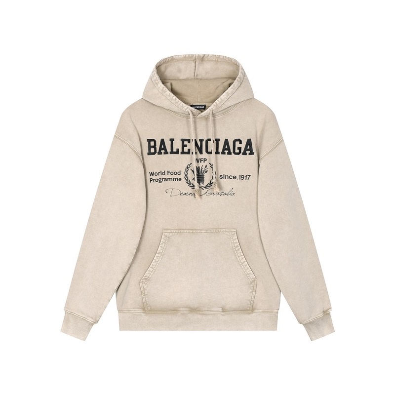 バレンシアガユニセックスカジュアルベージュフーディa08