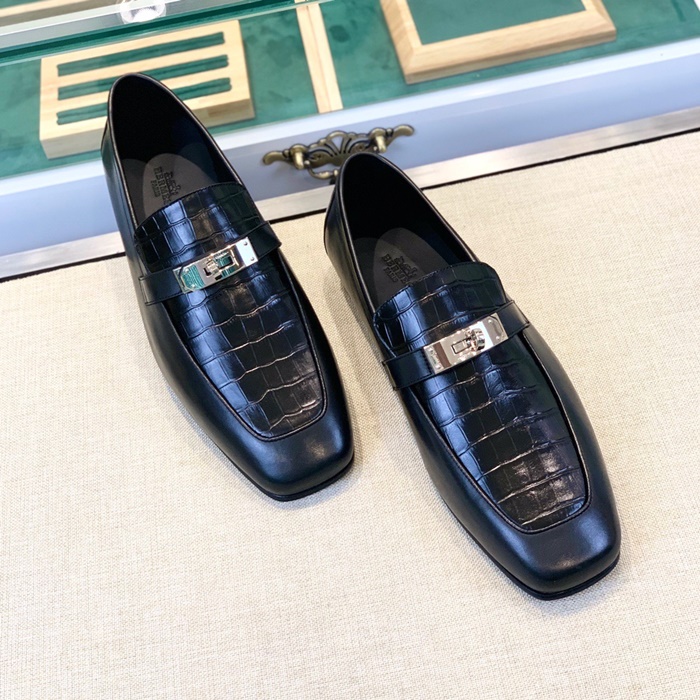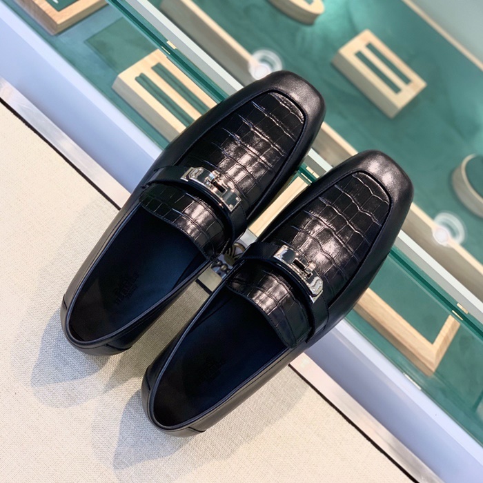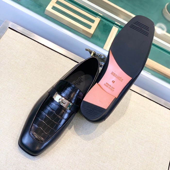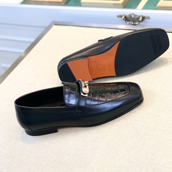エルメスメンズシグネチャーブラックローファーr925
