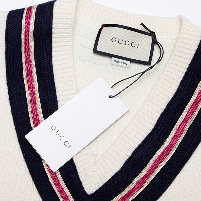 グッチメンズホワイトネックニットu74