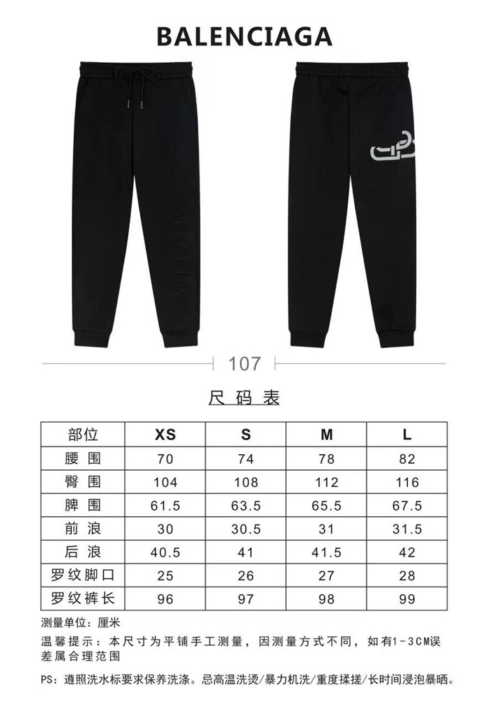 バレンシアガメンズカジュアルブラックパンツa14