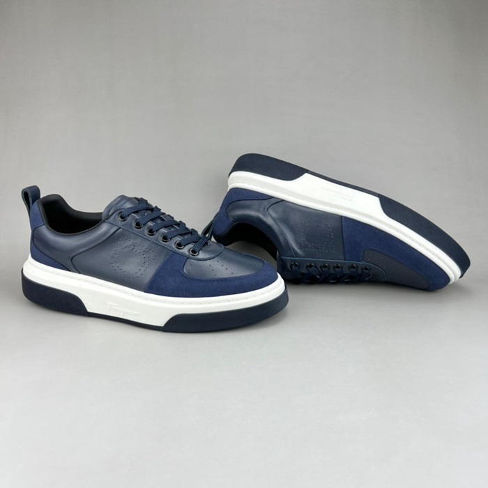 サルヴァトーレフェラガモメンズネイビースニーカーr372