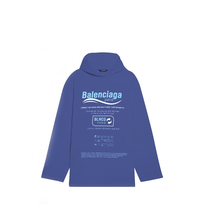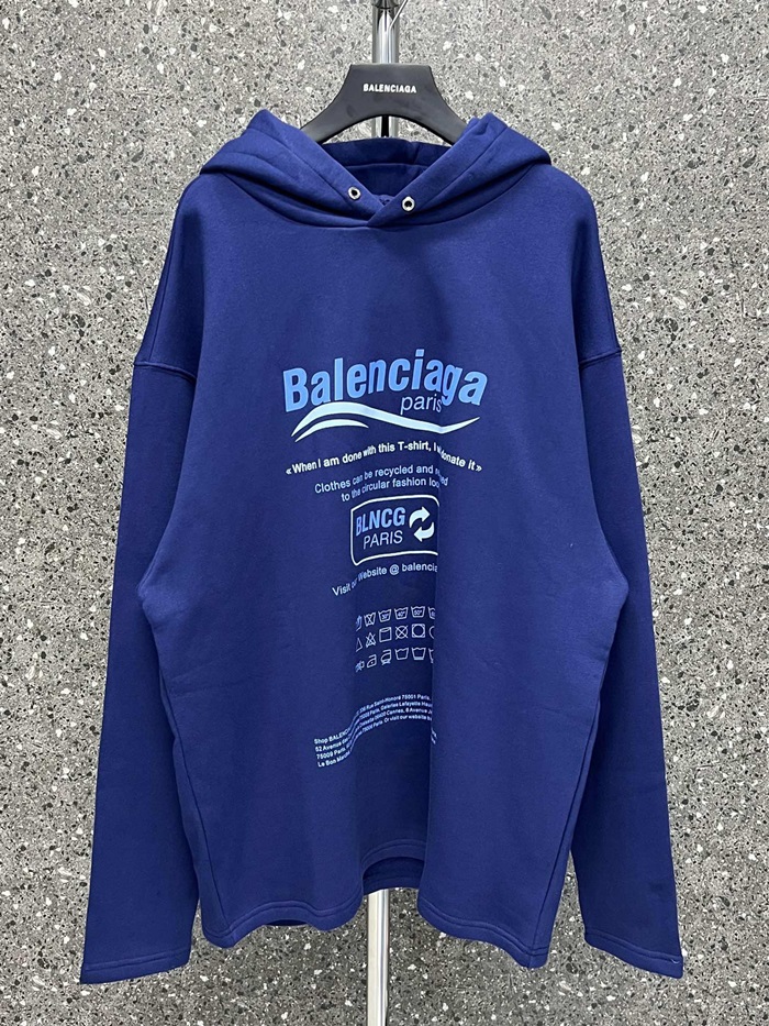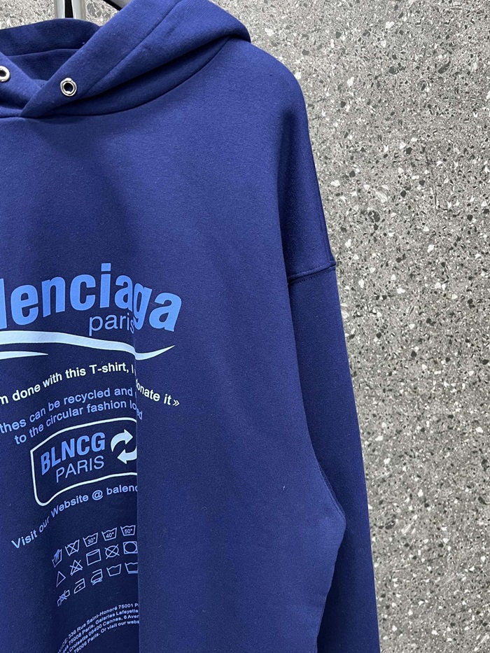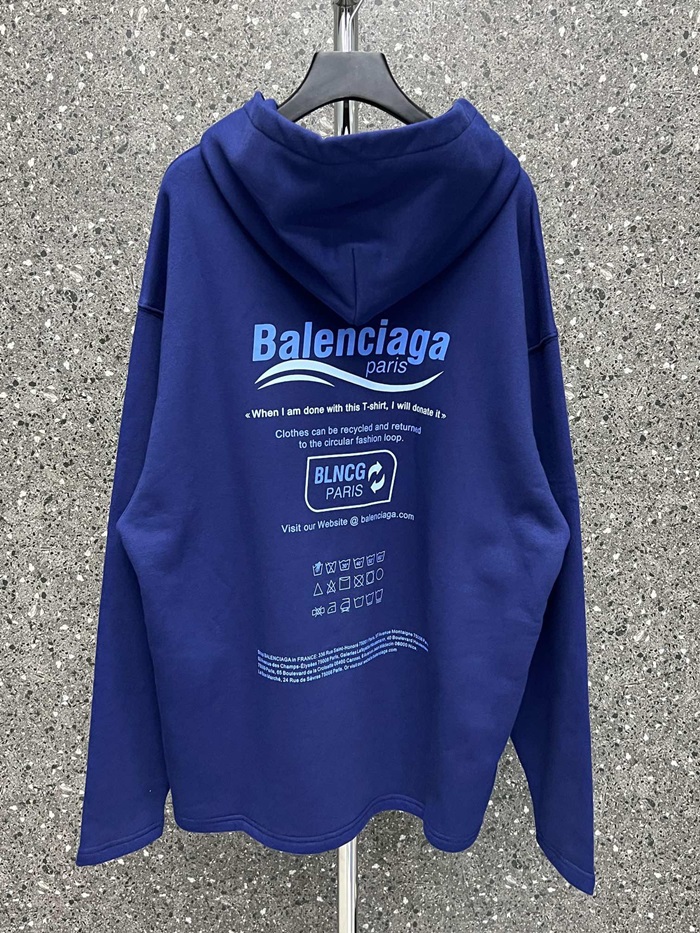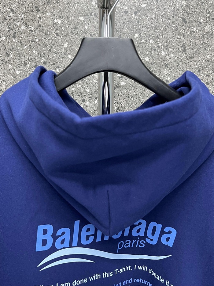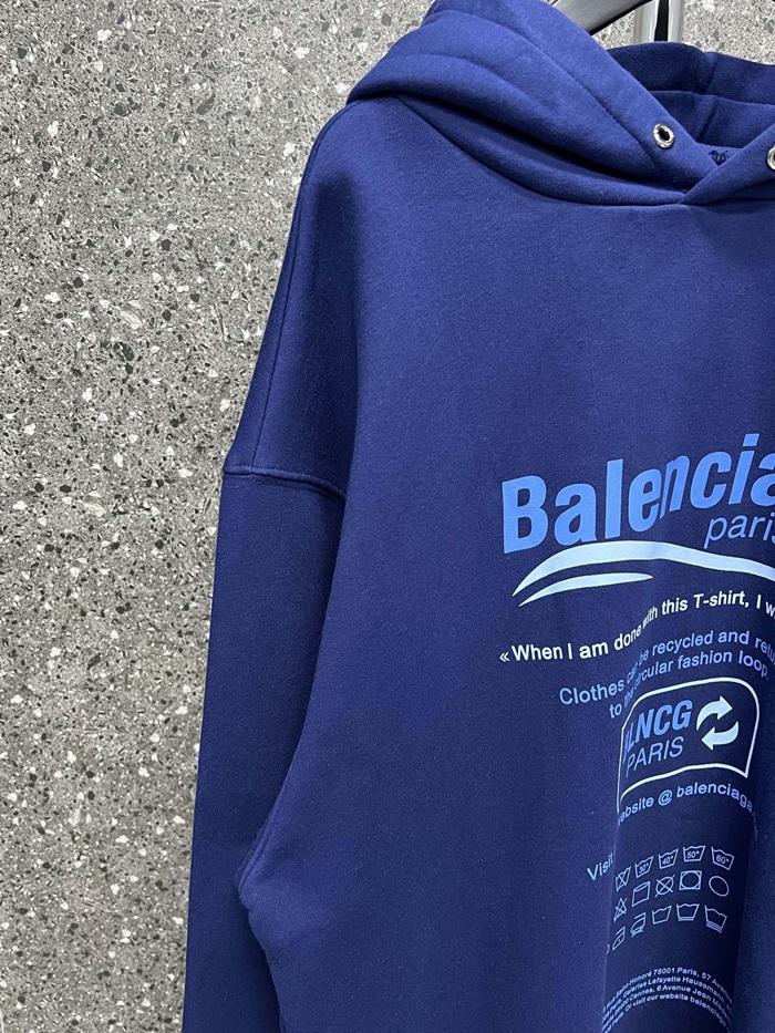 バレンシアガユニセックスカジュアルブルーフーディa16