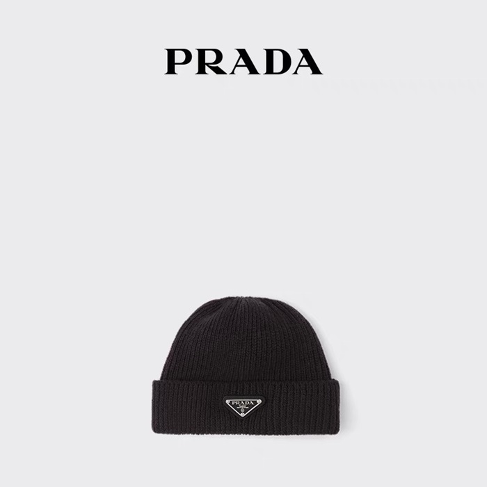 プラダユニセックスブラックビーニーr45