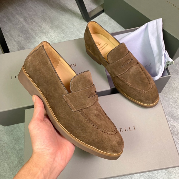 ブルネロクチネリメンズキャメルローファーu19