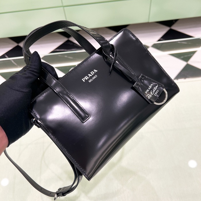 プラダレディースブラックショルダーバッグr97