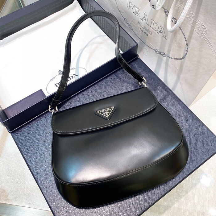 プラダレディースブラックショルダーバッグr200