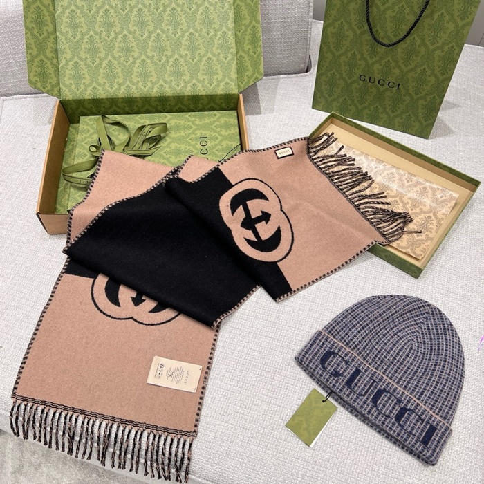 グッチメンズベージュマフラーc117