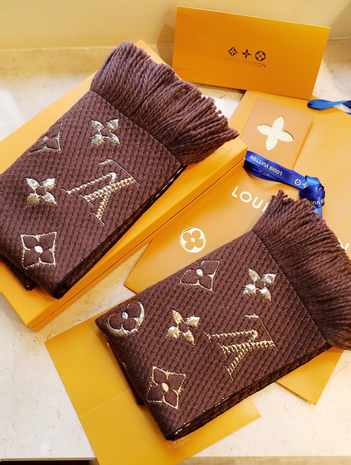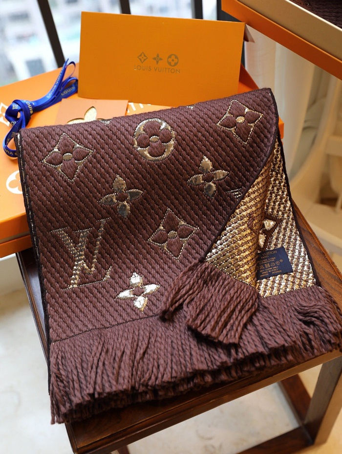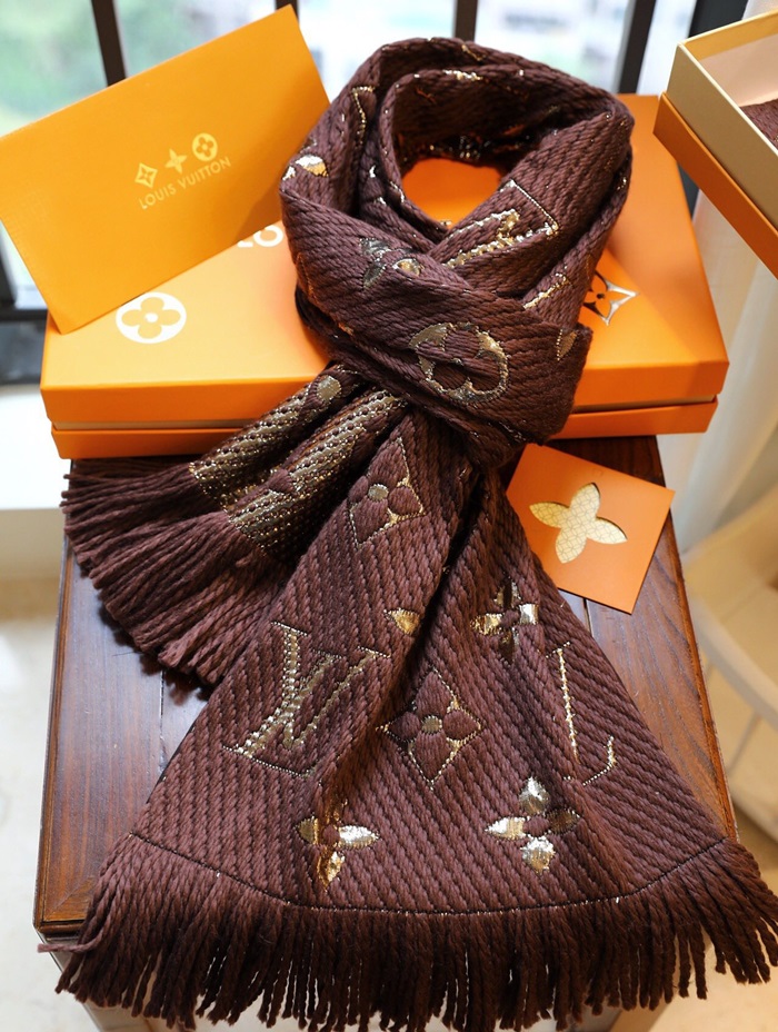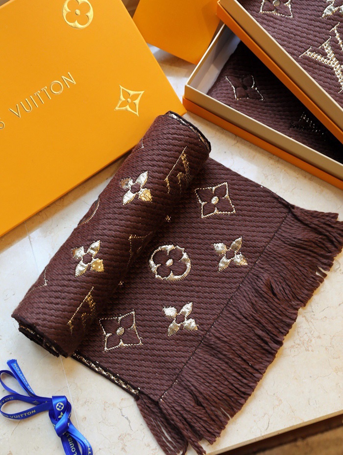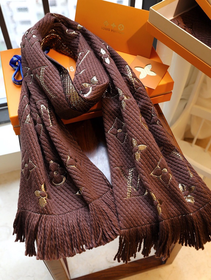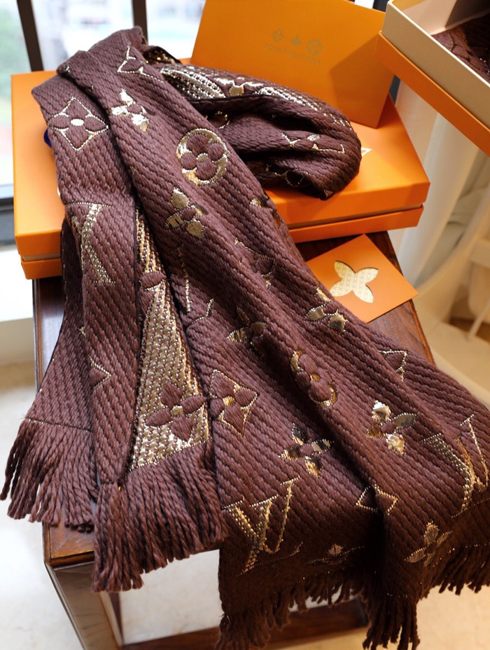 ルイヴィトンユニセックスブラウンマフラーv227