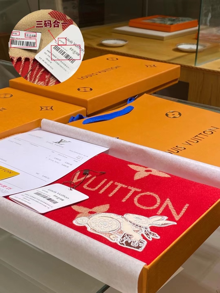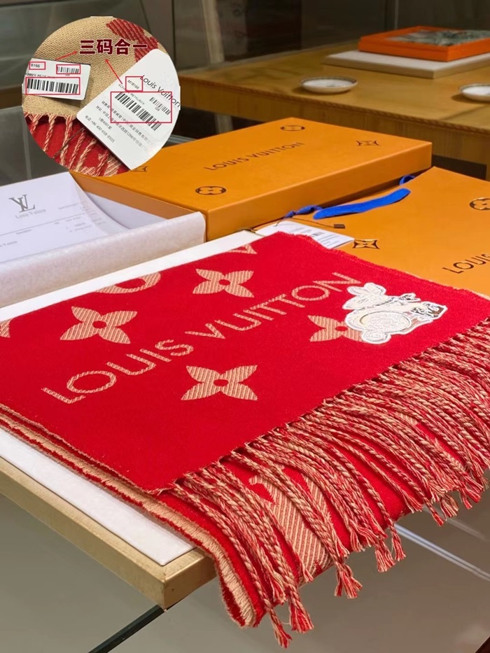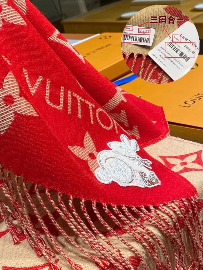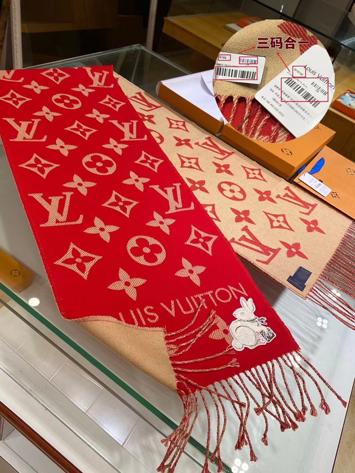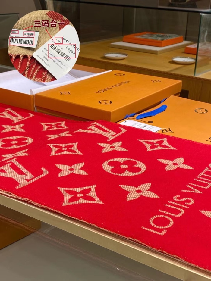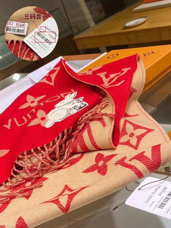 ルイヴィトンユニセックスレッドマフラーv228