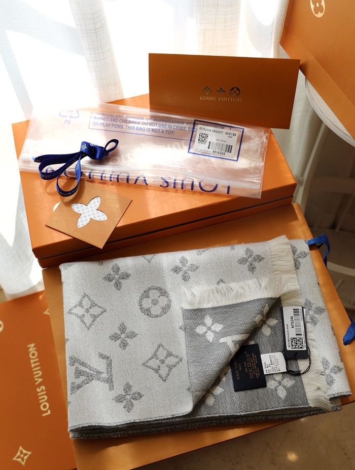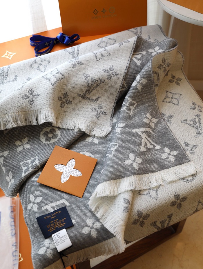 ルイヴィトンユニセックスグレーマフラーv240