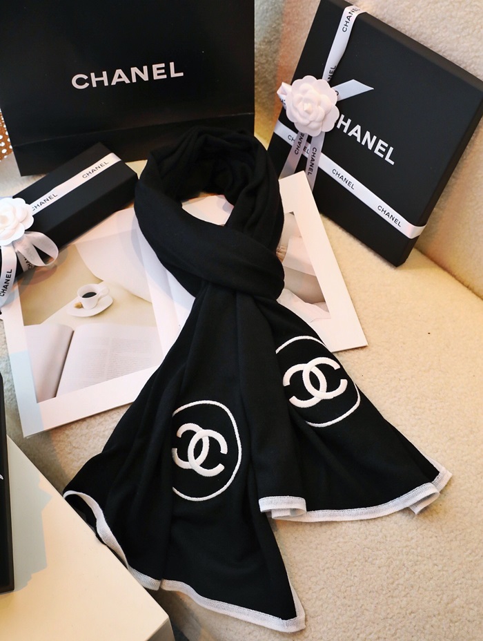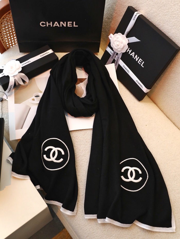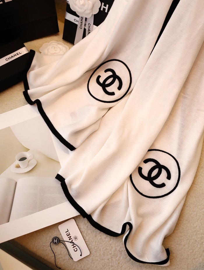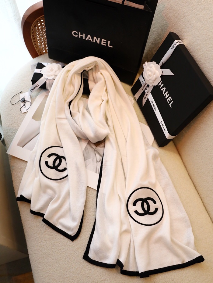 シャネルレディースホワイトマフラーh44