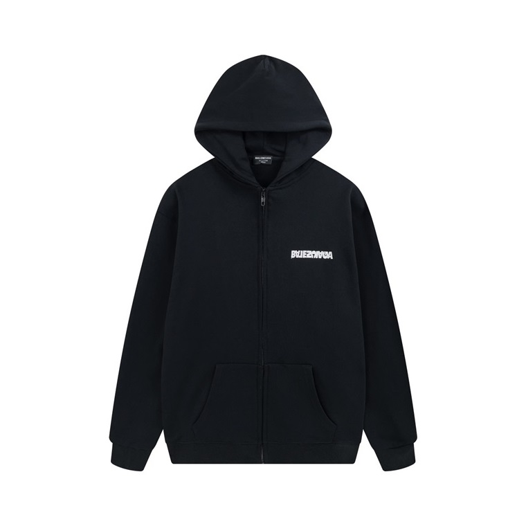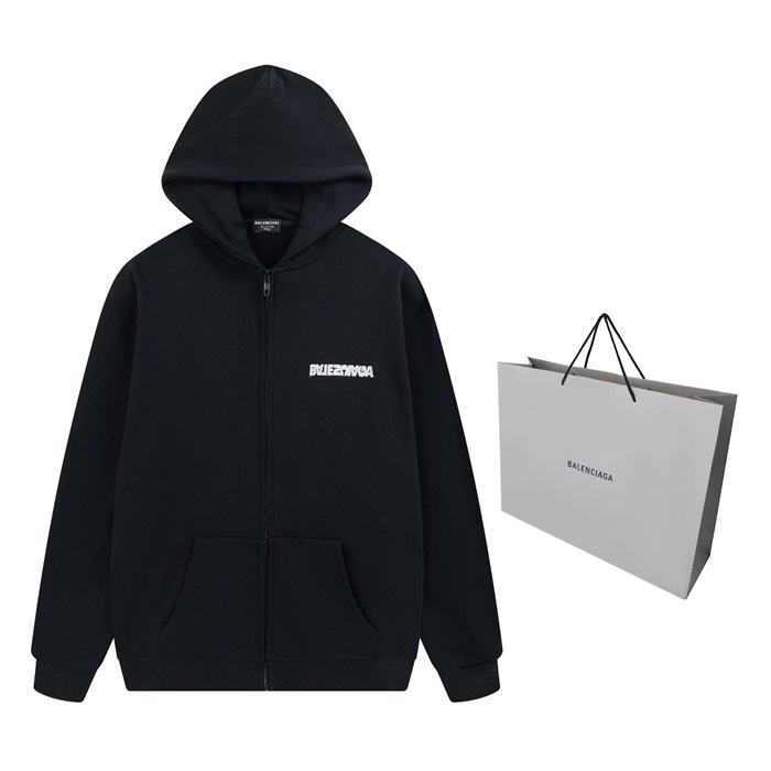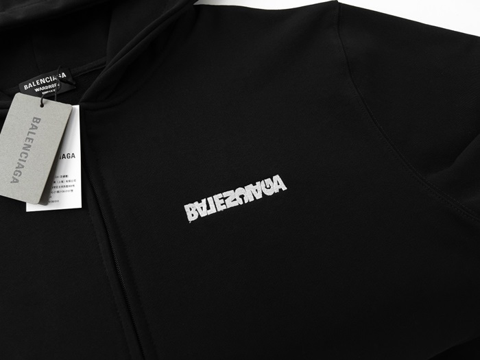 バレンシアガユニセックスブラックジップアップフーディa82