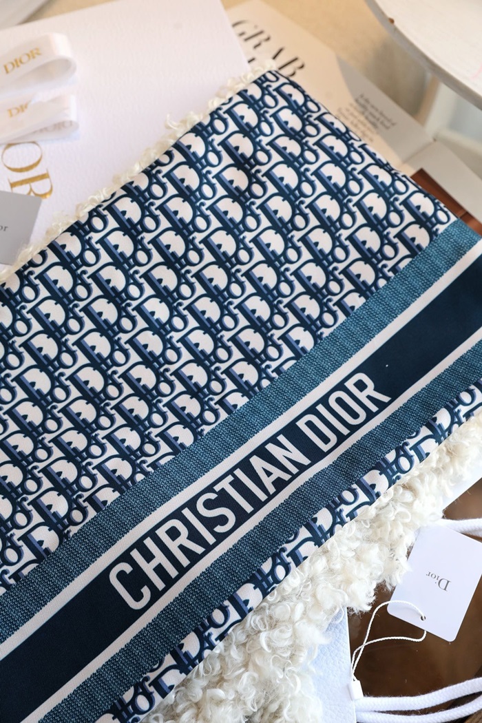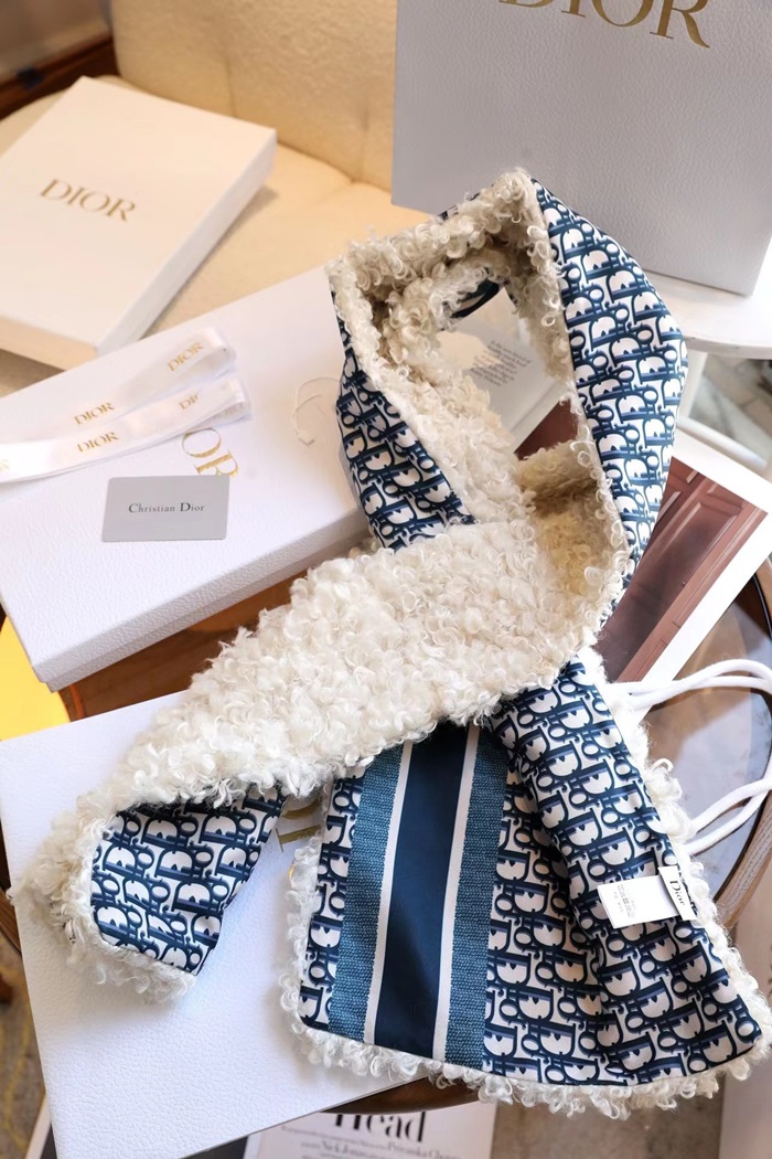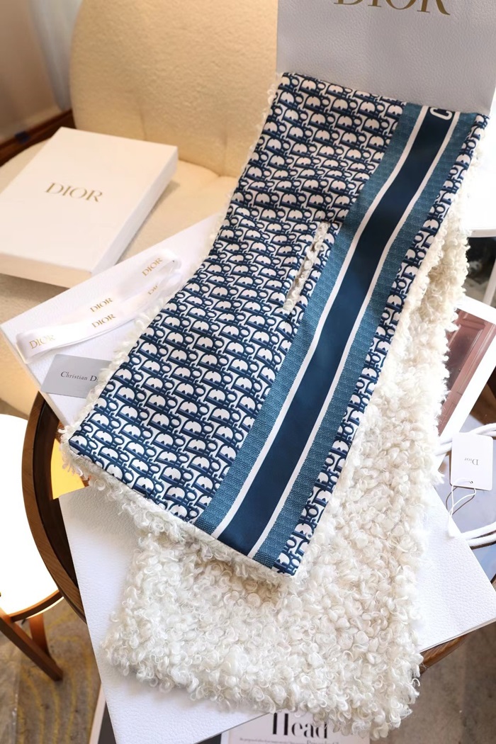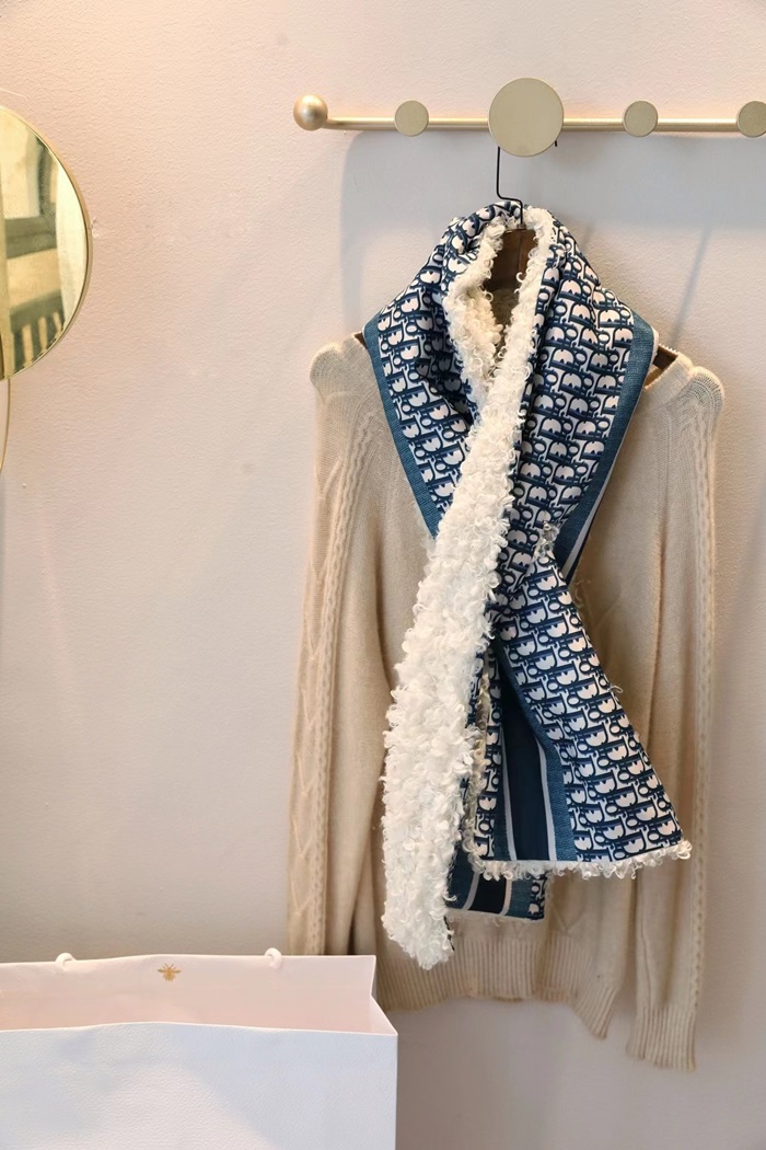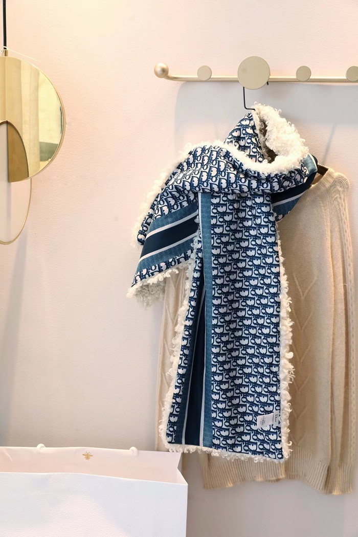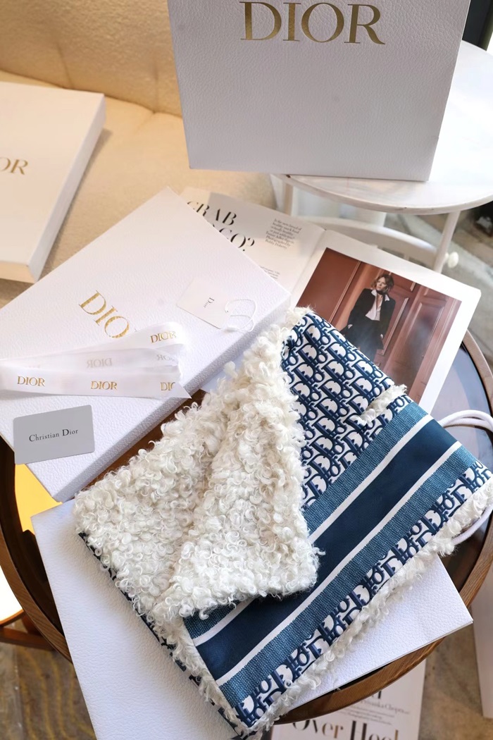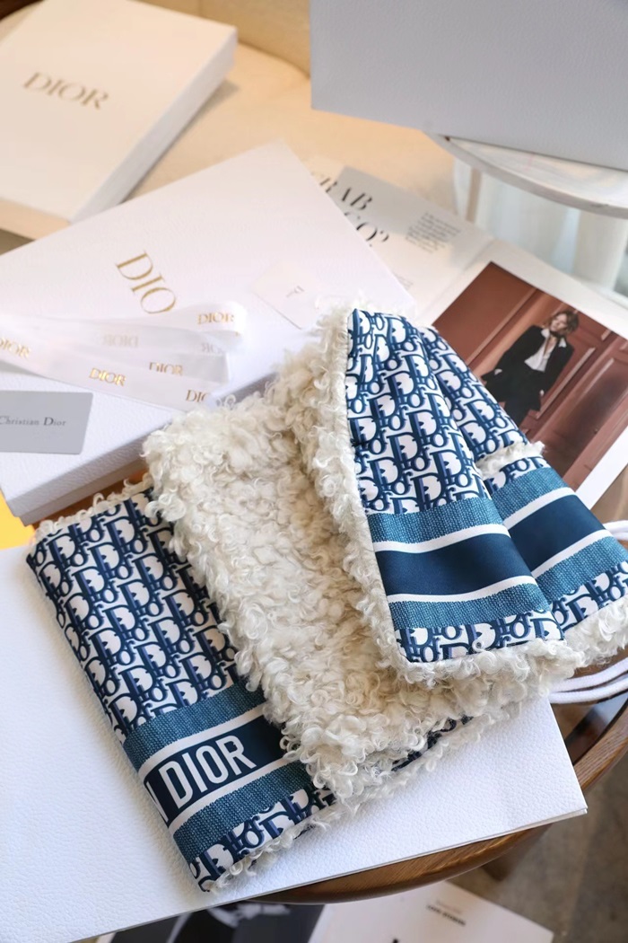 ディオールユニセックスブルーマフラーi182