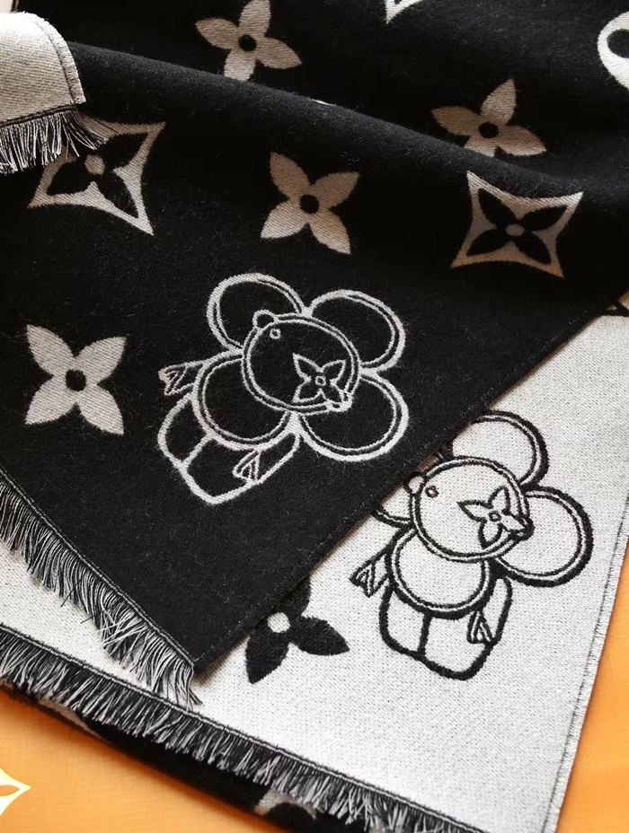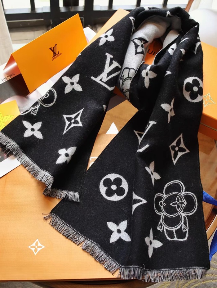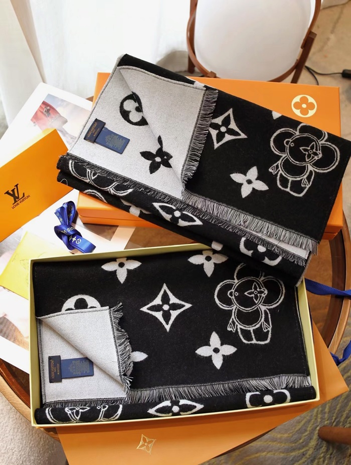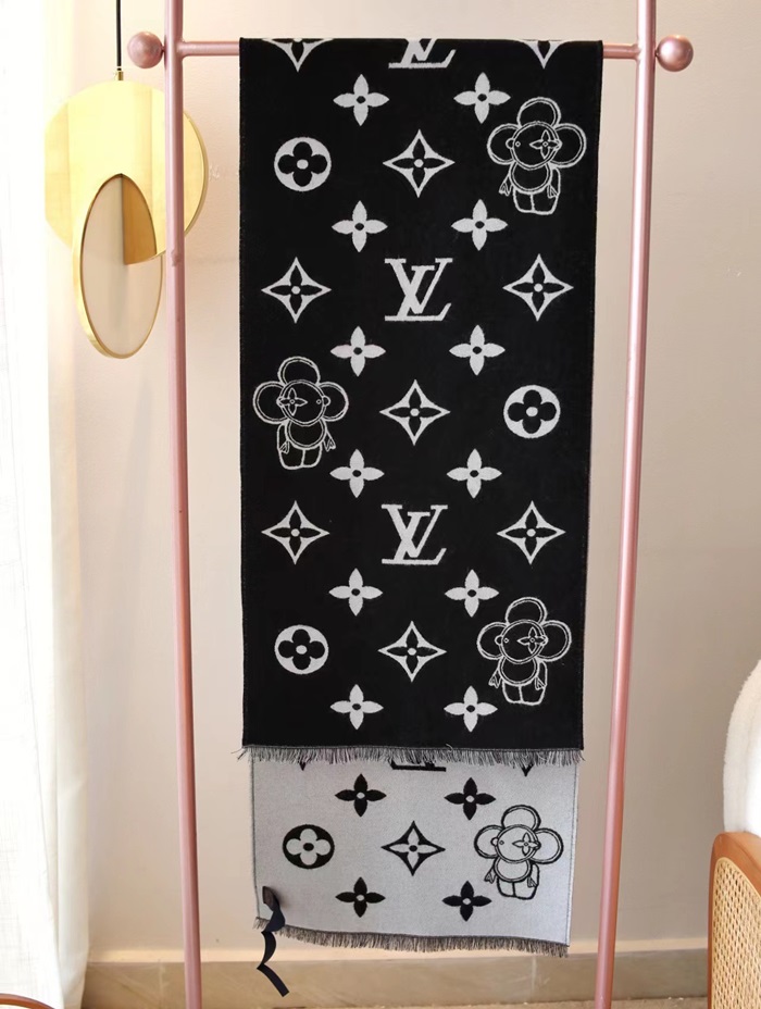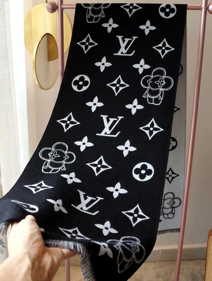 ルイヴィトンユニセックスブラックマフラーv269