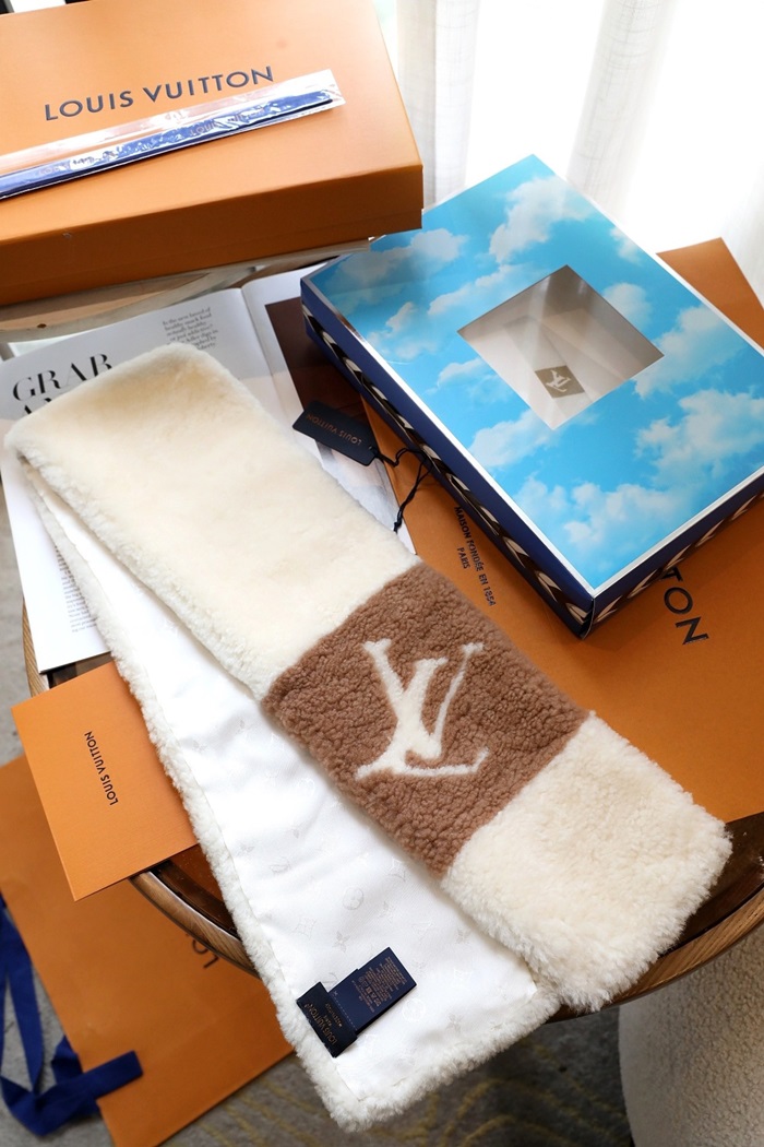 ルイヴィトンユニセックスアイボリーマフラーv273
