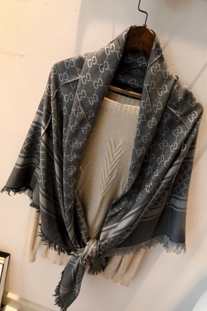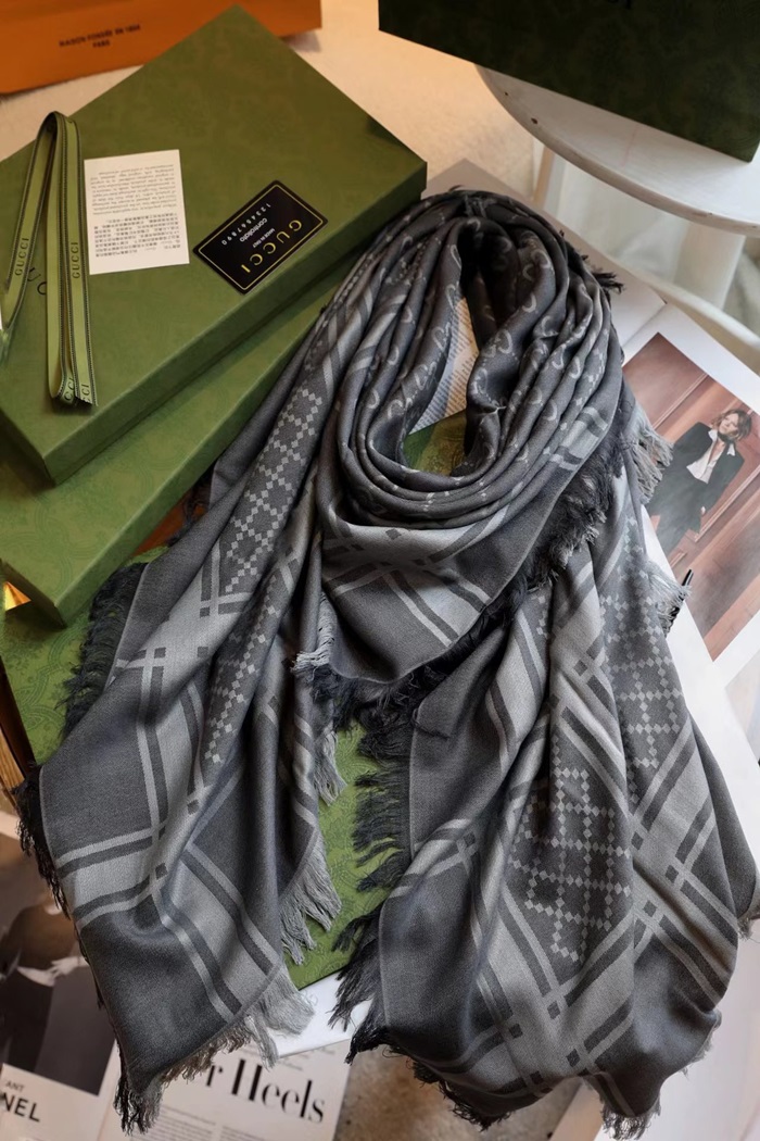 グッチユニセックスグレーマフラーu130