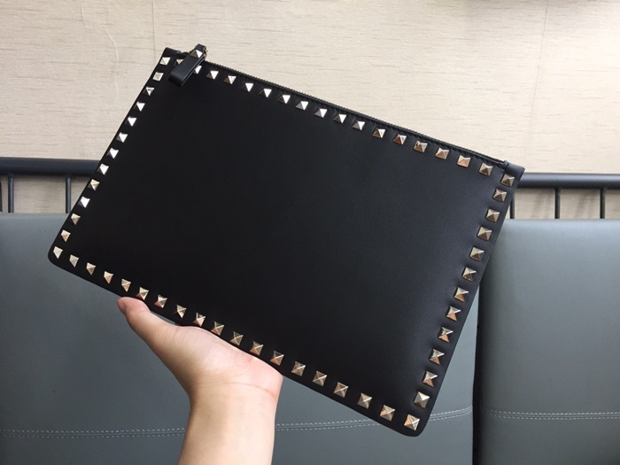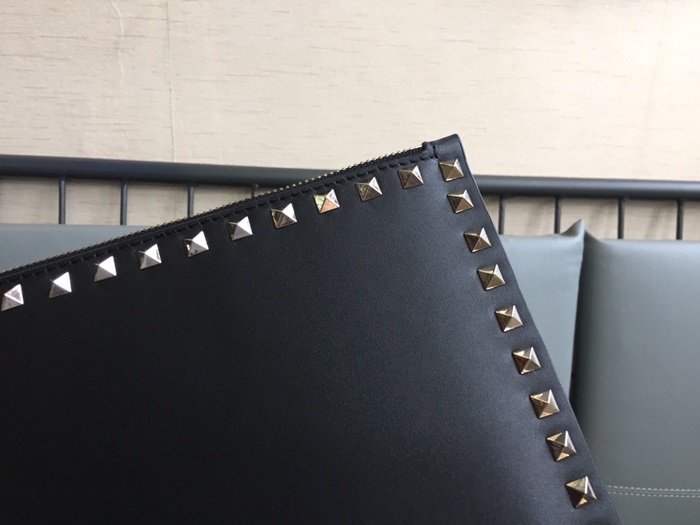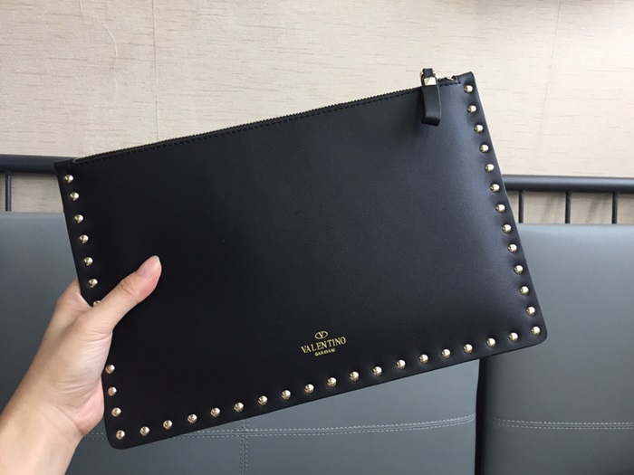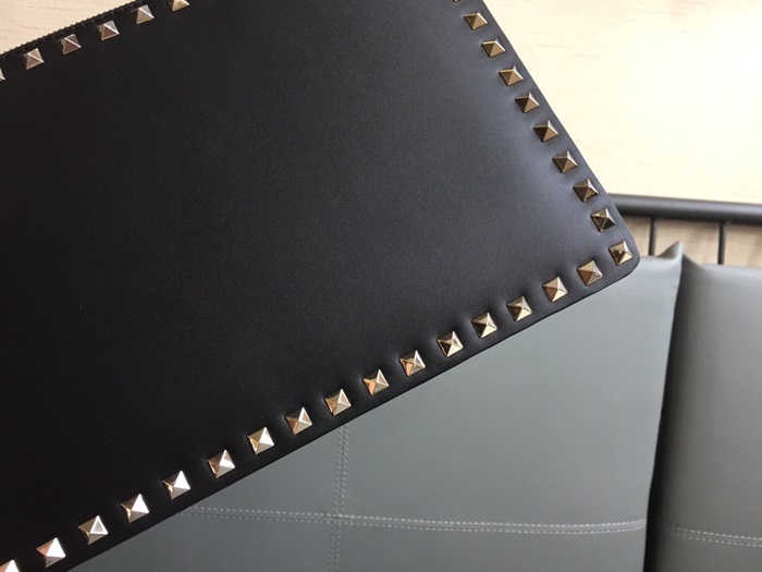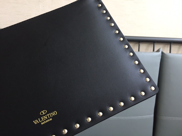 ヴァレンティノレディースブラックスタッドクラッチバッグa380
