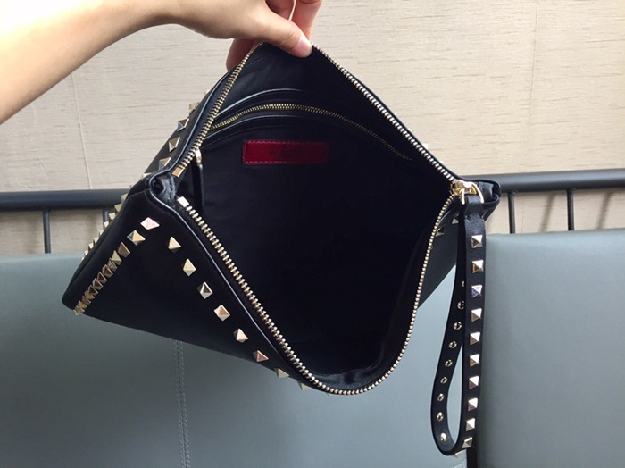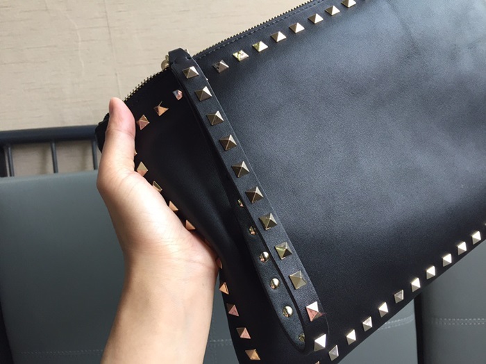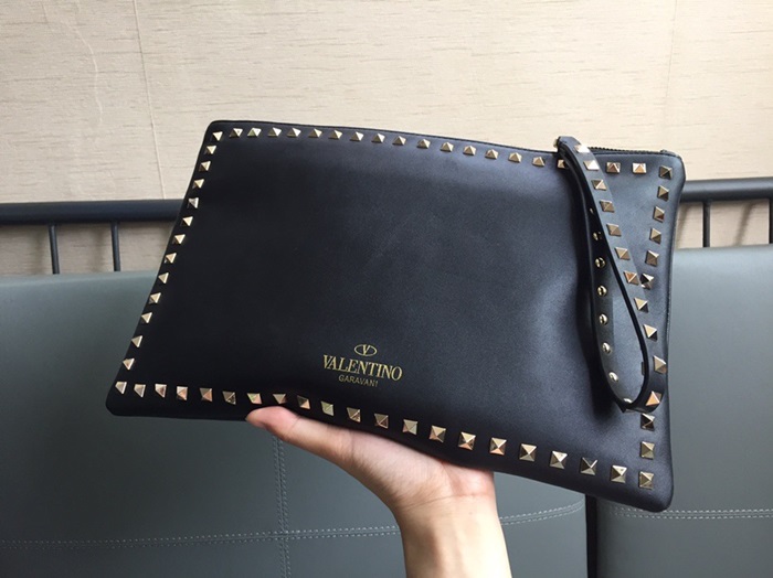 ヴァレンティノユニセックスブラックスタッドクラッチバッグa381