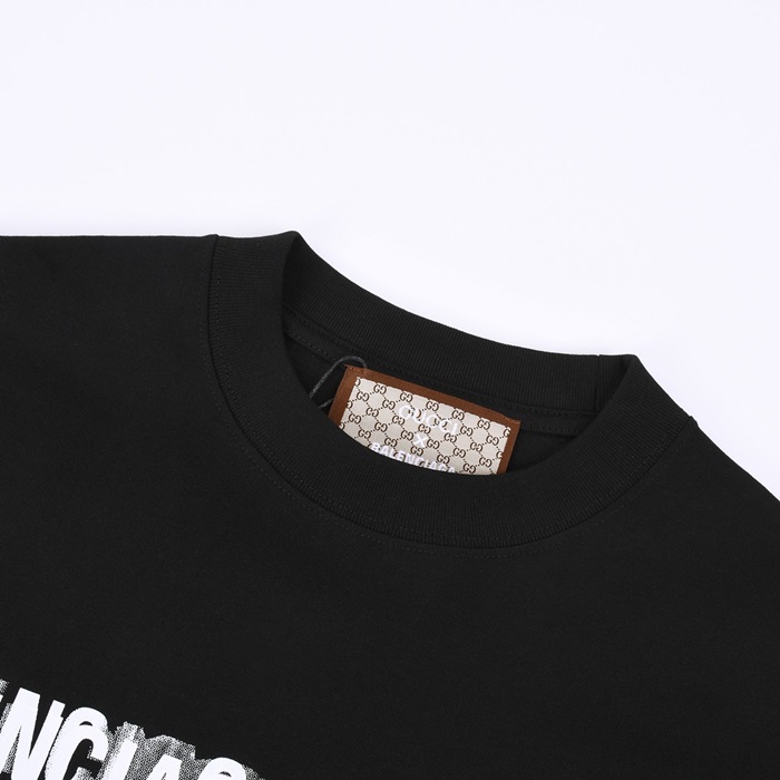 バレンシアガメンズクルーネックブラック半袖Tシャツa122