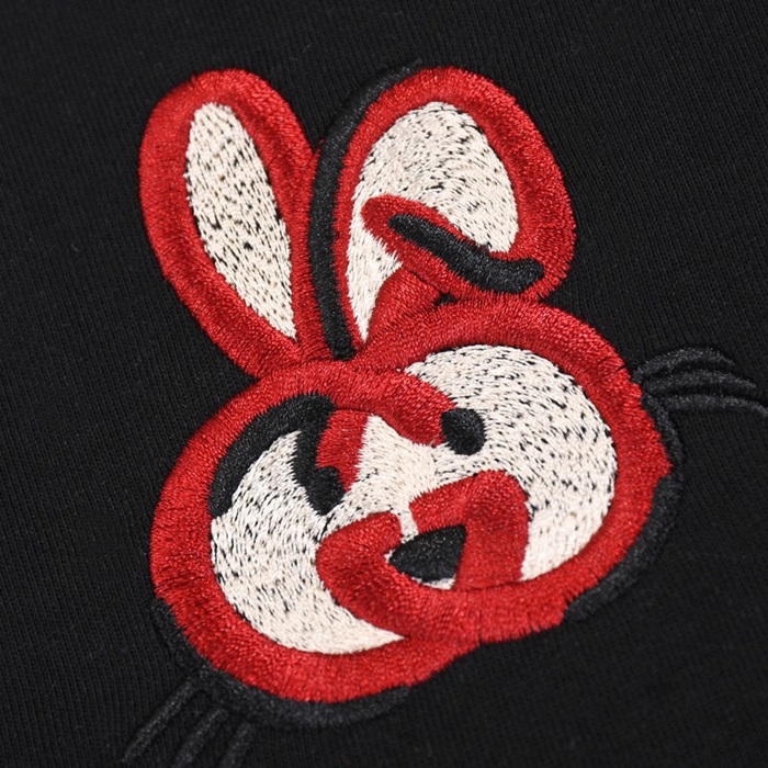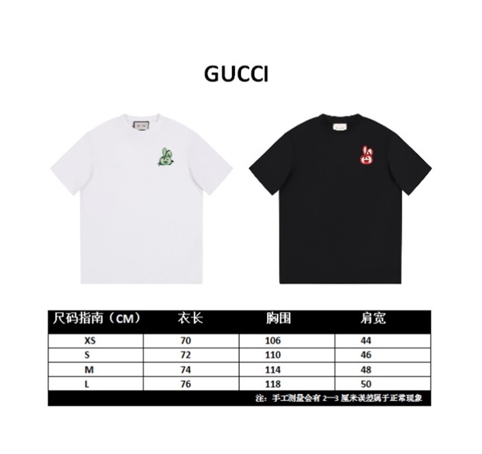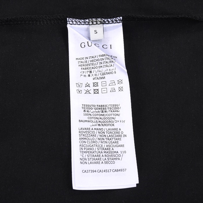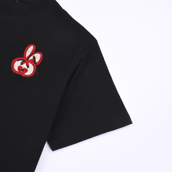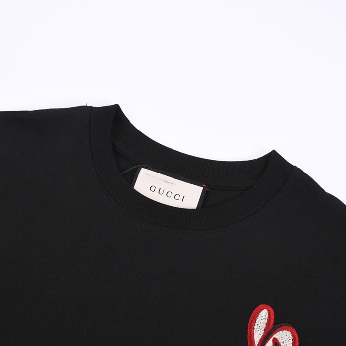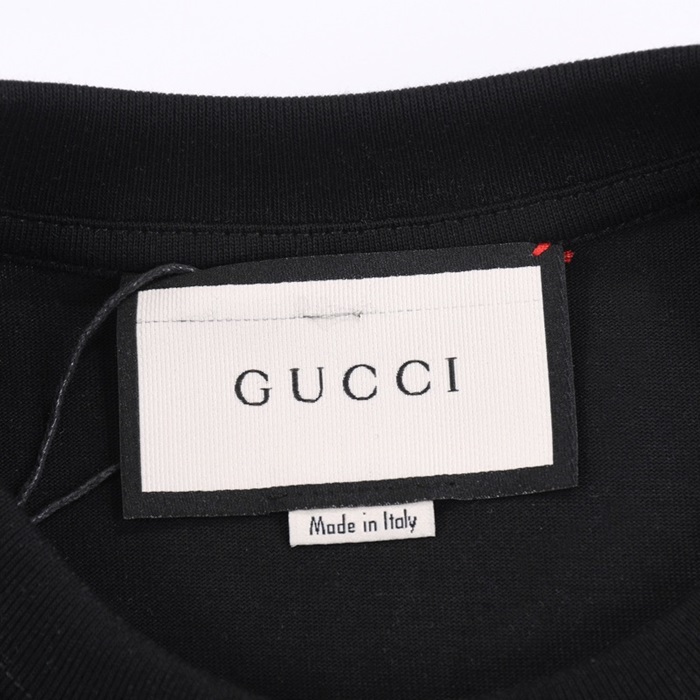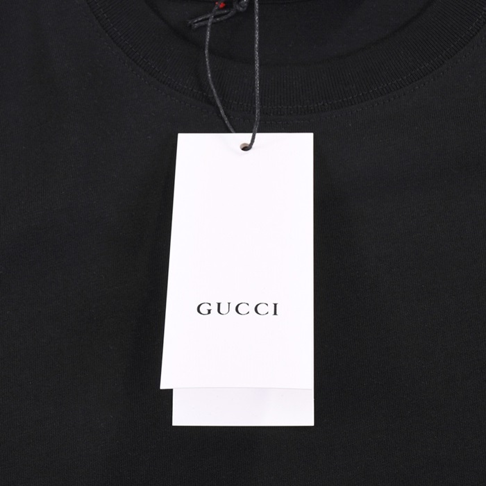 グッチユニセックスブラッククルーネック半袖Tシャツu150