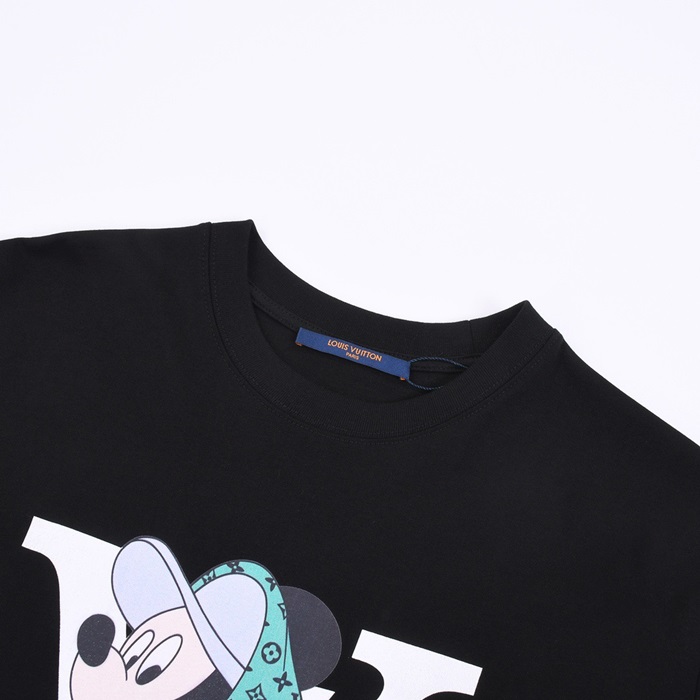 ルイヴィトンメンズブラッククルーネック半袖Tシャツv305