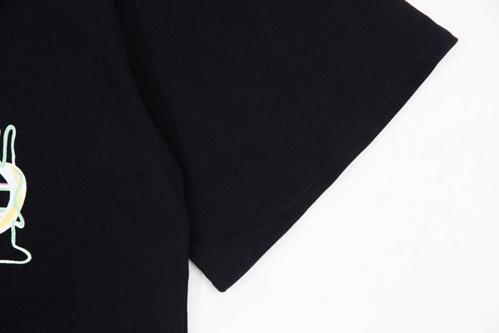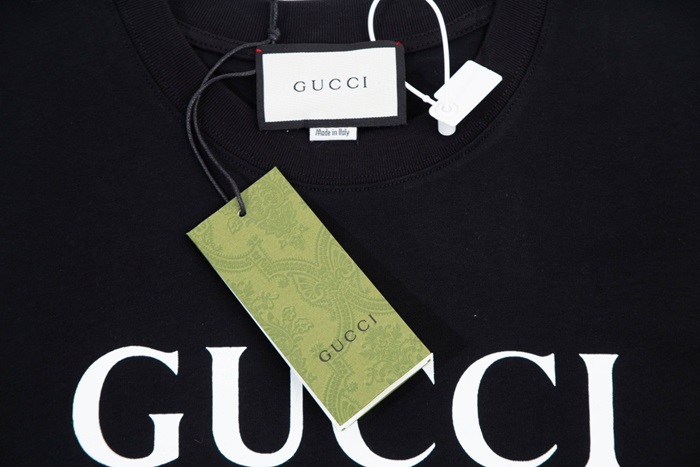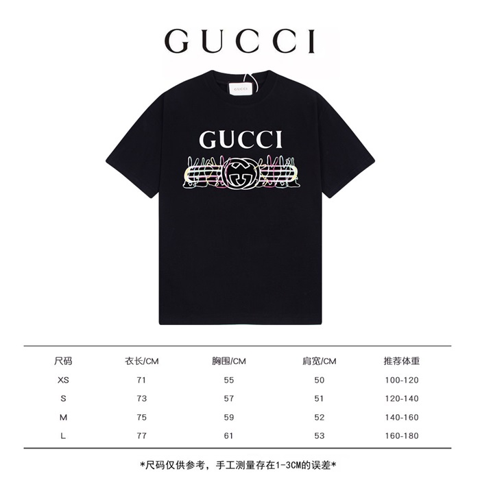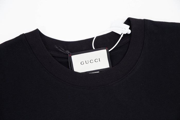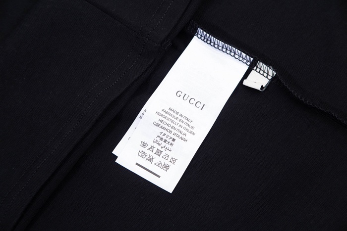グッチユニセックスブラッククルーネック半袖Tシャツu154