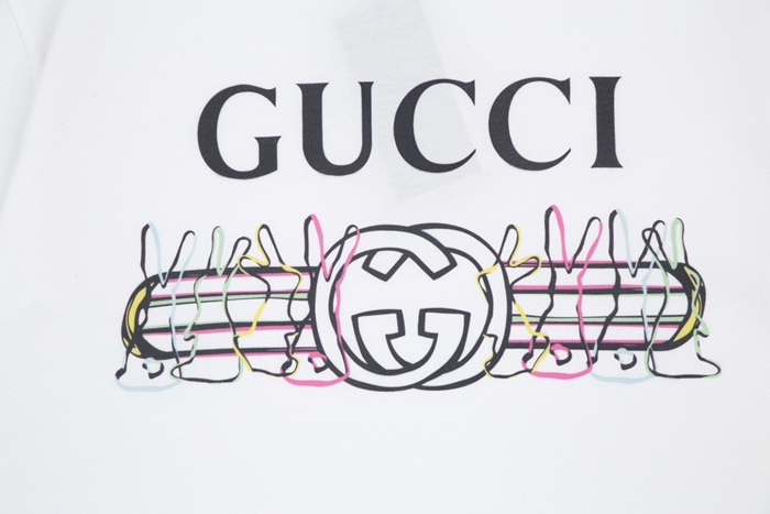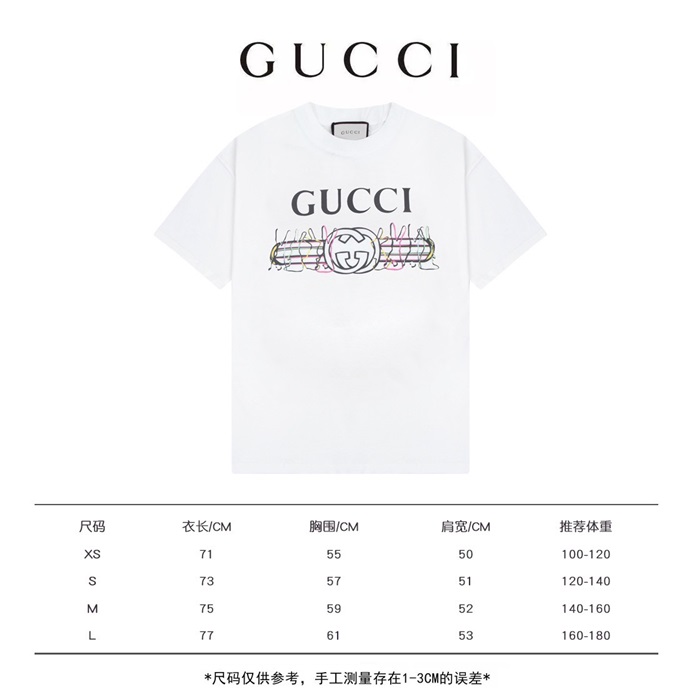グッチユニセックスホワイトクルーネック半袖Tシャツu155