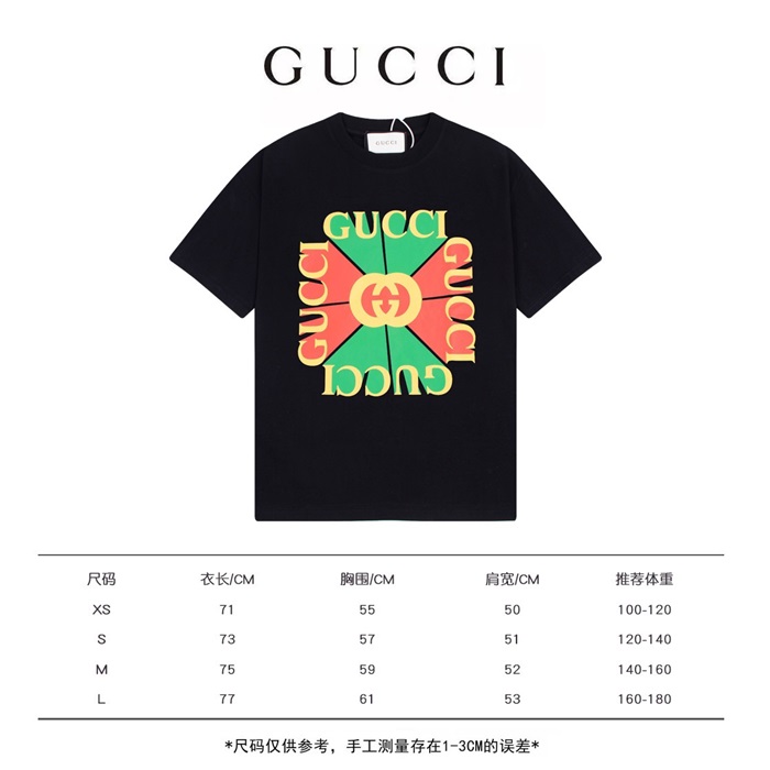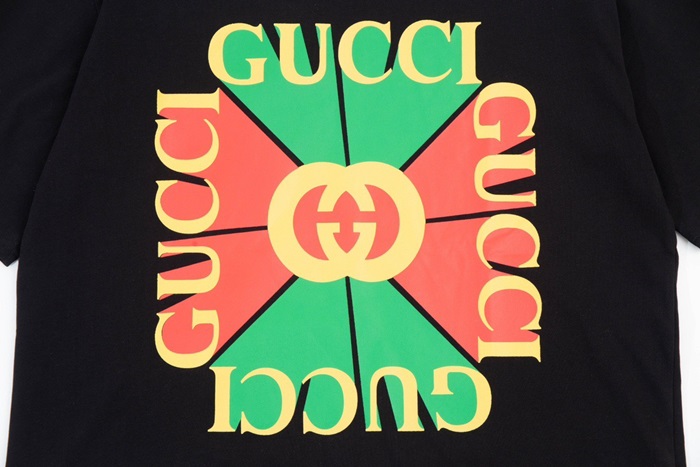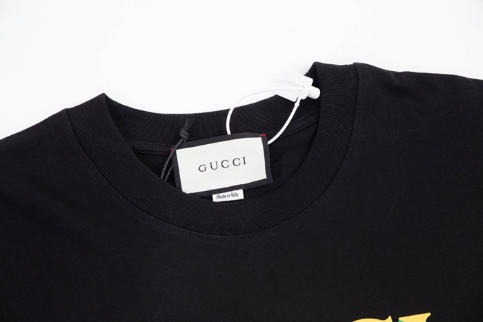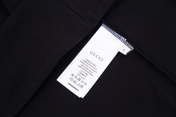 グッチユニセックスブラッククルーネック半袖Tシャツu157