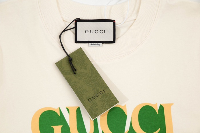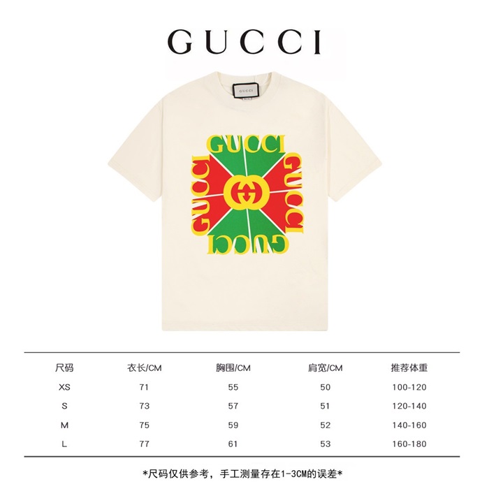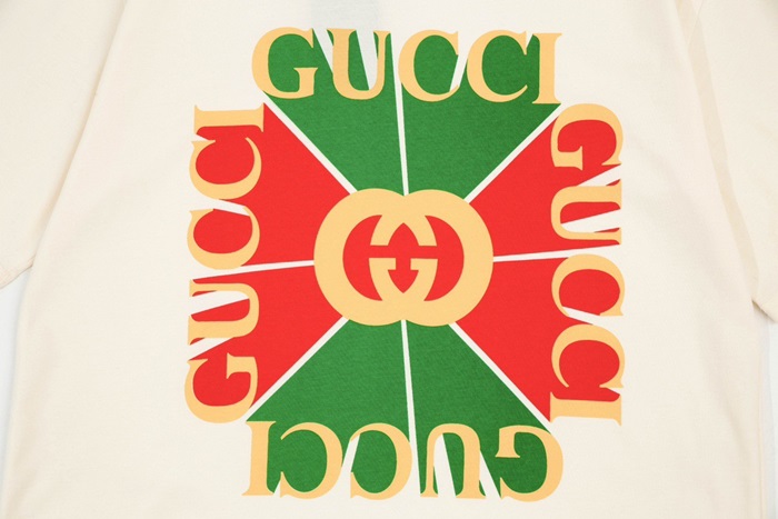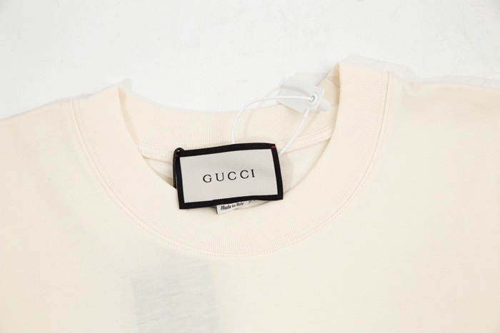 グッチユニセックスアイボリークルーネック半袖Tシャツu158