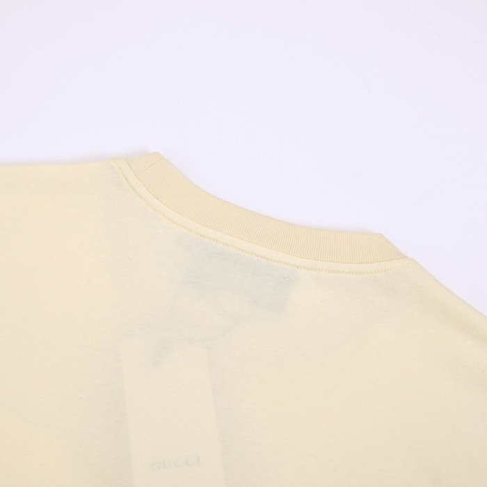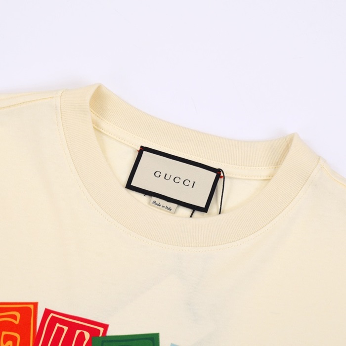 グッチユニセックスアイボリークルーネック半袖Tシャツu163