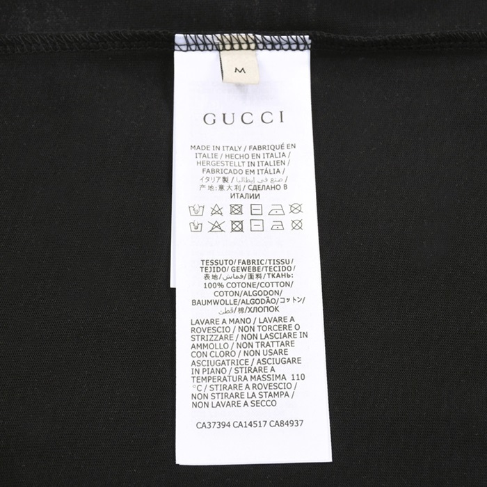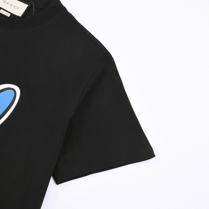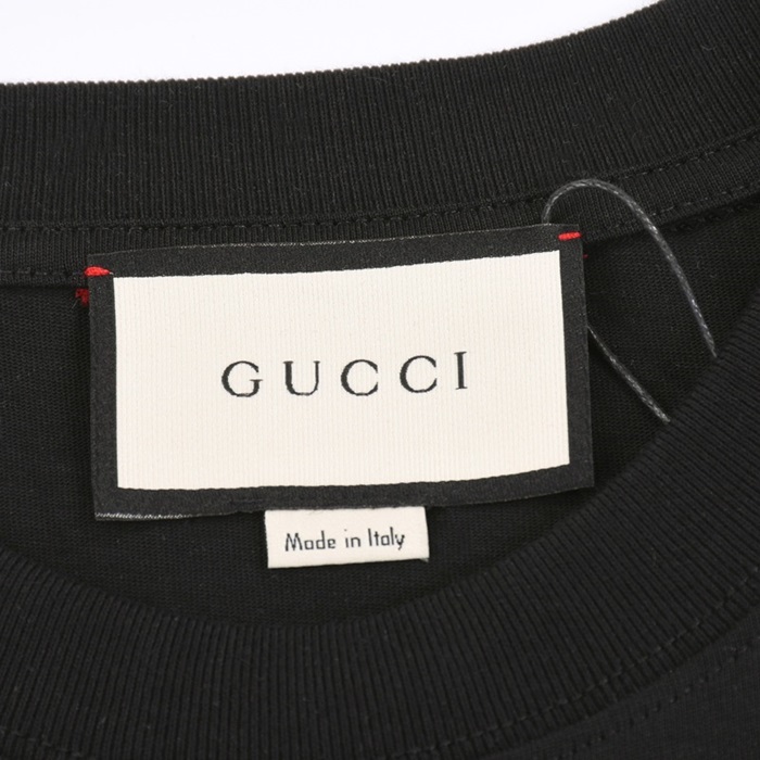グッチユニセックスブラッククルーネック半袖Tシャツu164