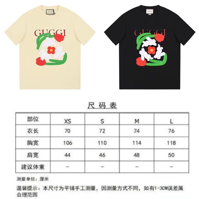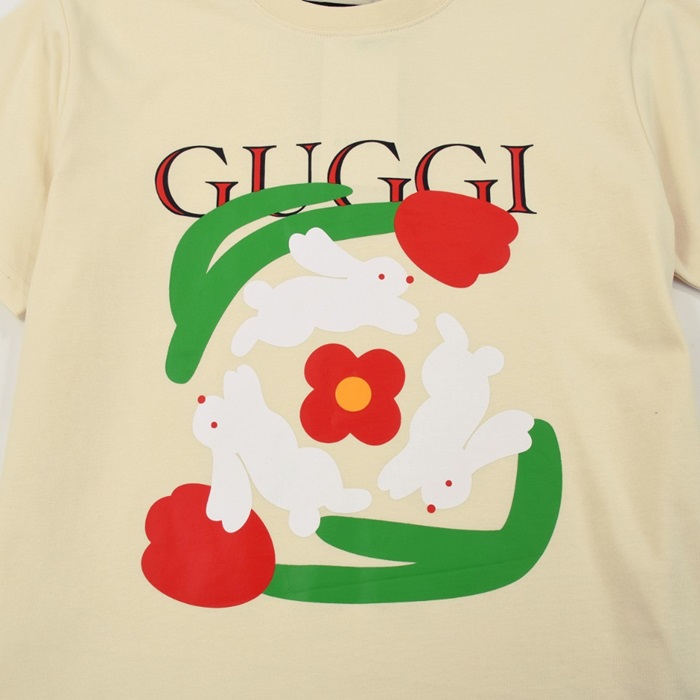 グッチユニセックスアイボリークルーネック半袖Tシャツu169
