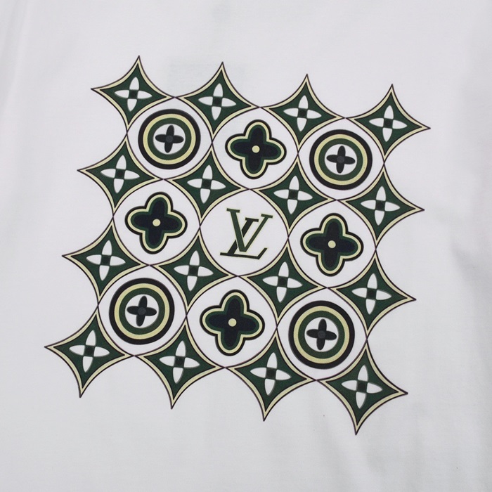 ルイヴィトンメンズホワイトクルーネック半袖Tシャツv322