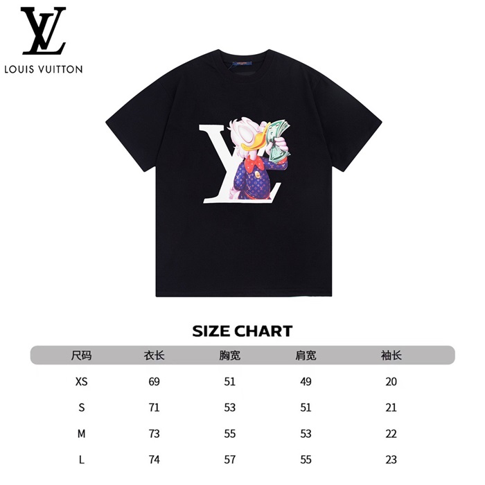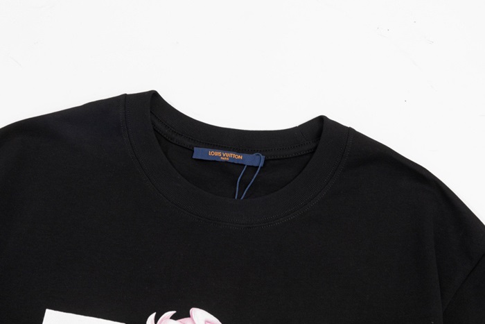 ルイヴィトンメンズブラッククルーネック半袖Tシャツv324