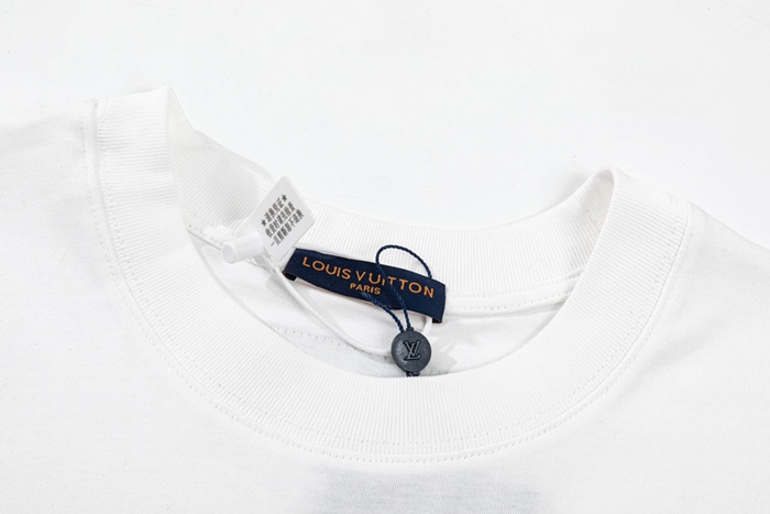 ルイヴィトンメンズホワイトクルーネック半袖Tシャツv329