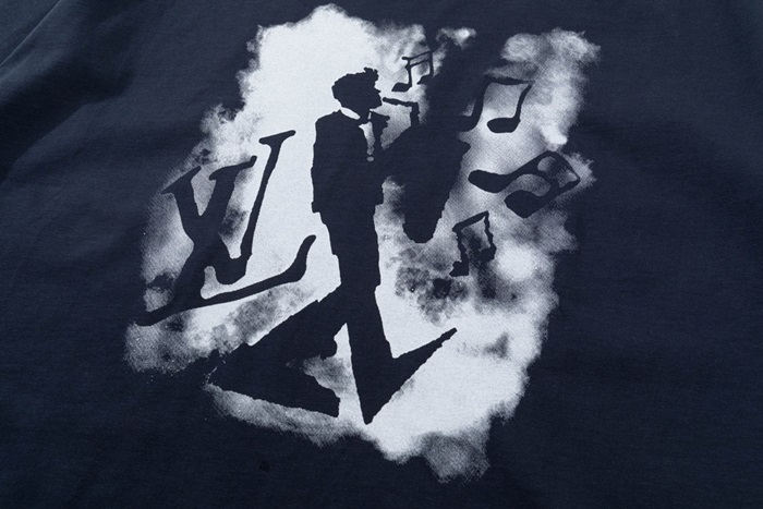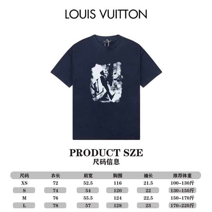 ルイヴィトンメンズネイビークルーネック半袖Tシャツv330