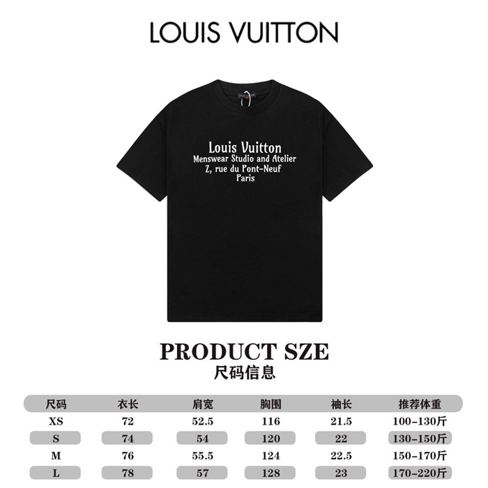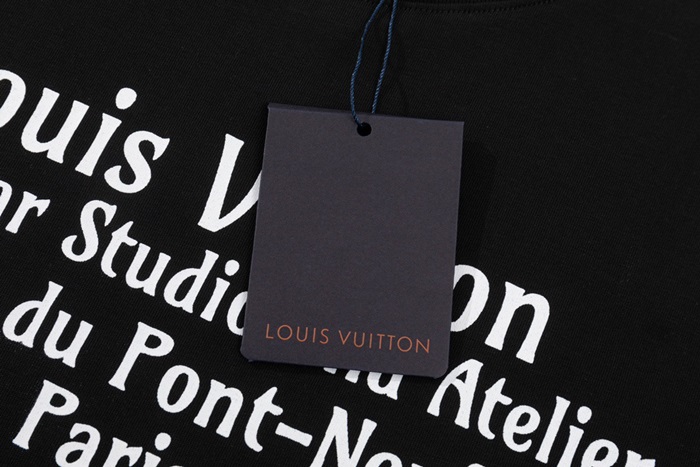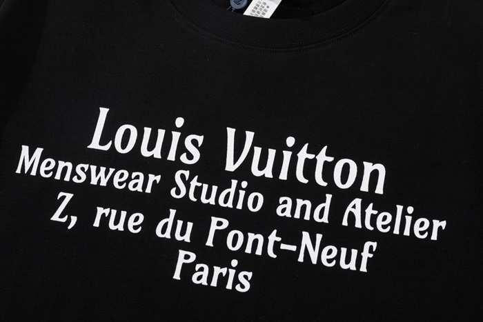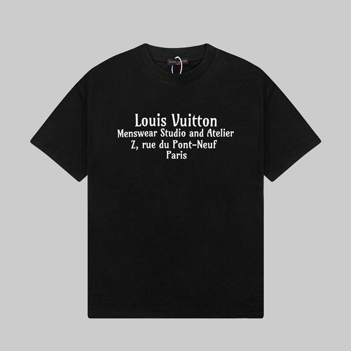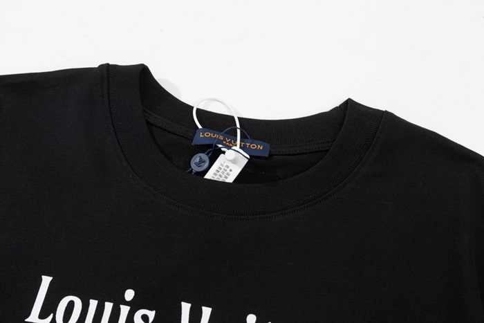 ルイヴィトンメンズブラッククルーネック半袖Tシャツv338