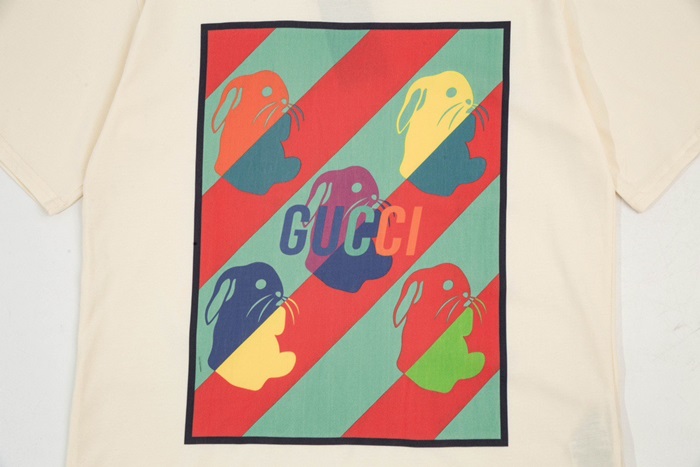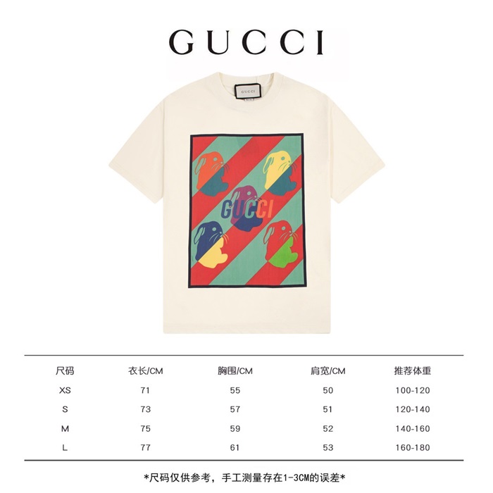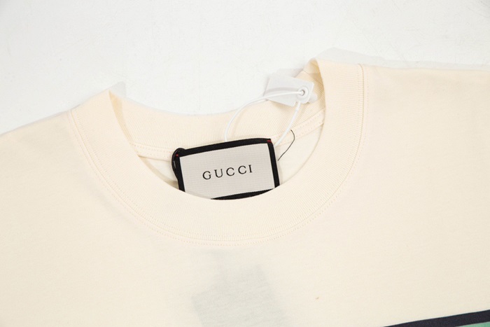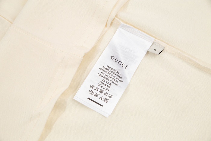 グッチユニセックスアイボリークルーネック半袖Tシャツu177