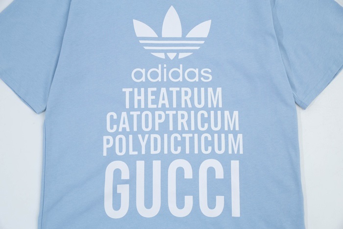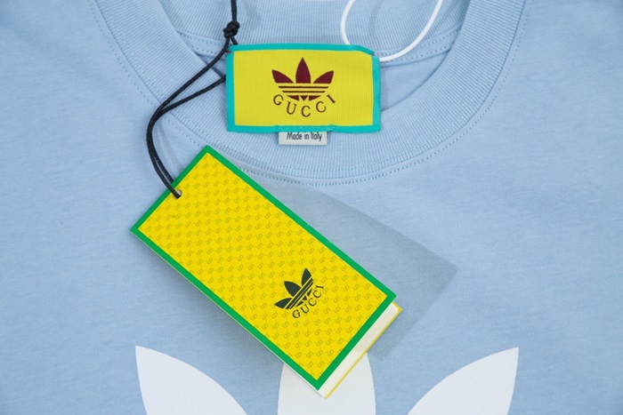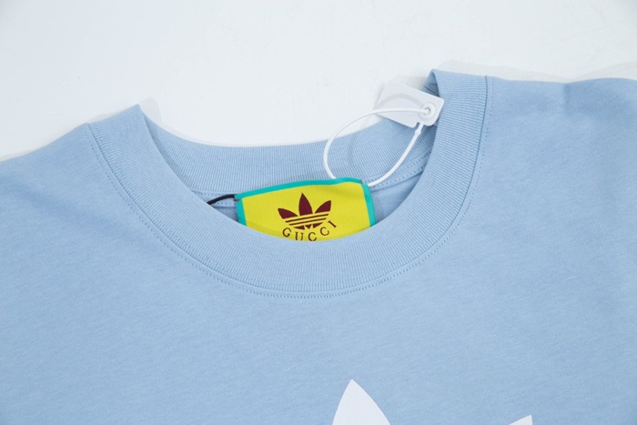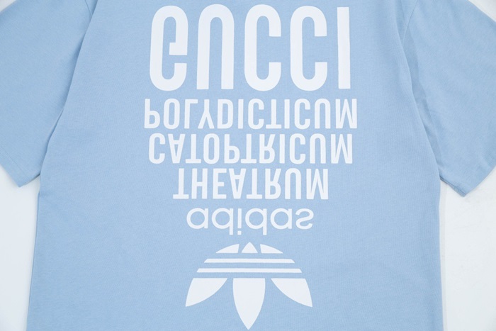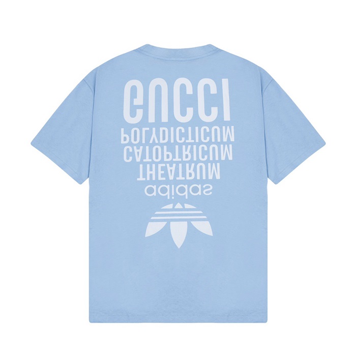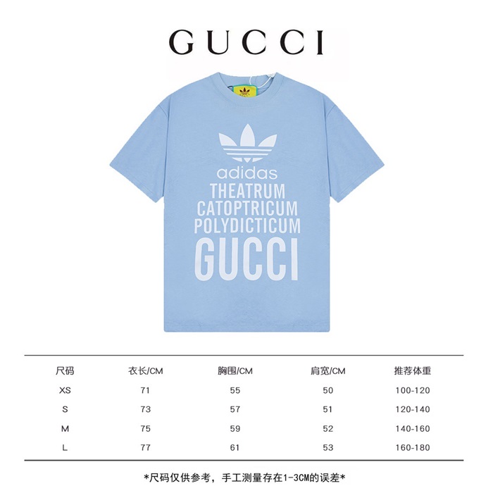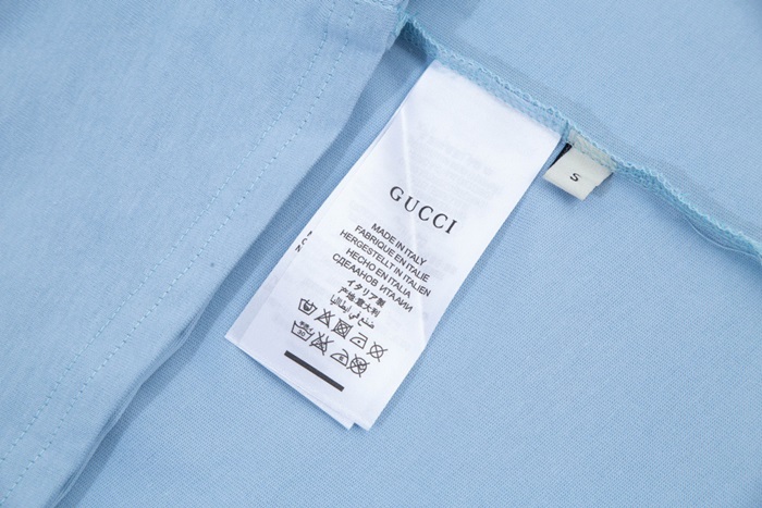 グッチユニセックスブルークルーネック半袖Tシャツu178