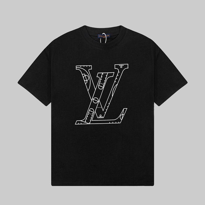 ルイヴィトンメンズブラッククルーネック半袖Tシャツv341